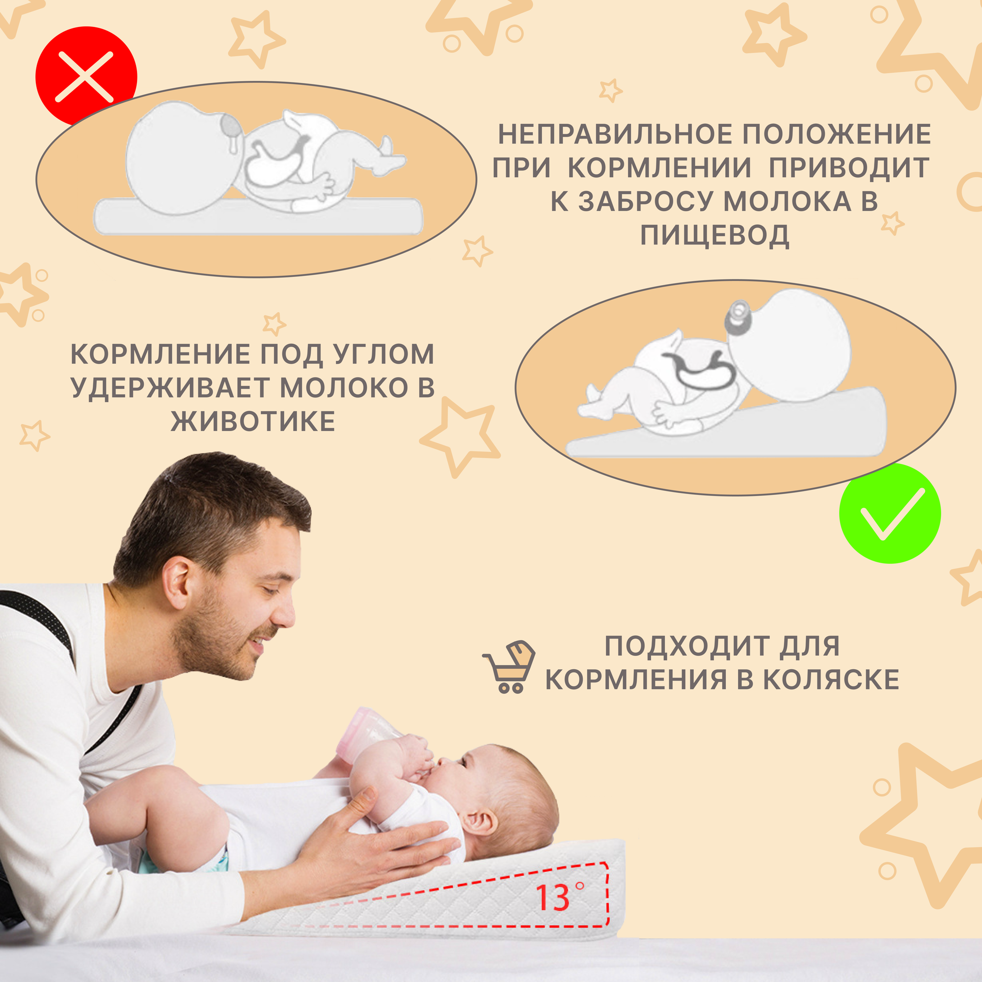 Подушка для новорожденных против срыгивания после кормления в коляску, кроватку 30×40 см интересное: