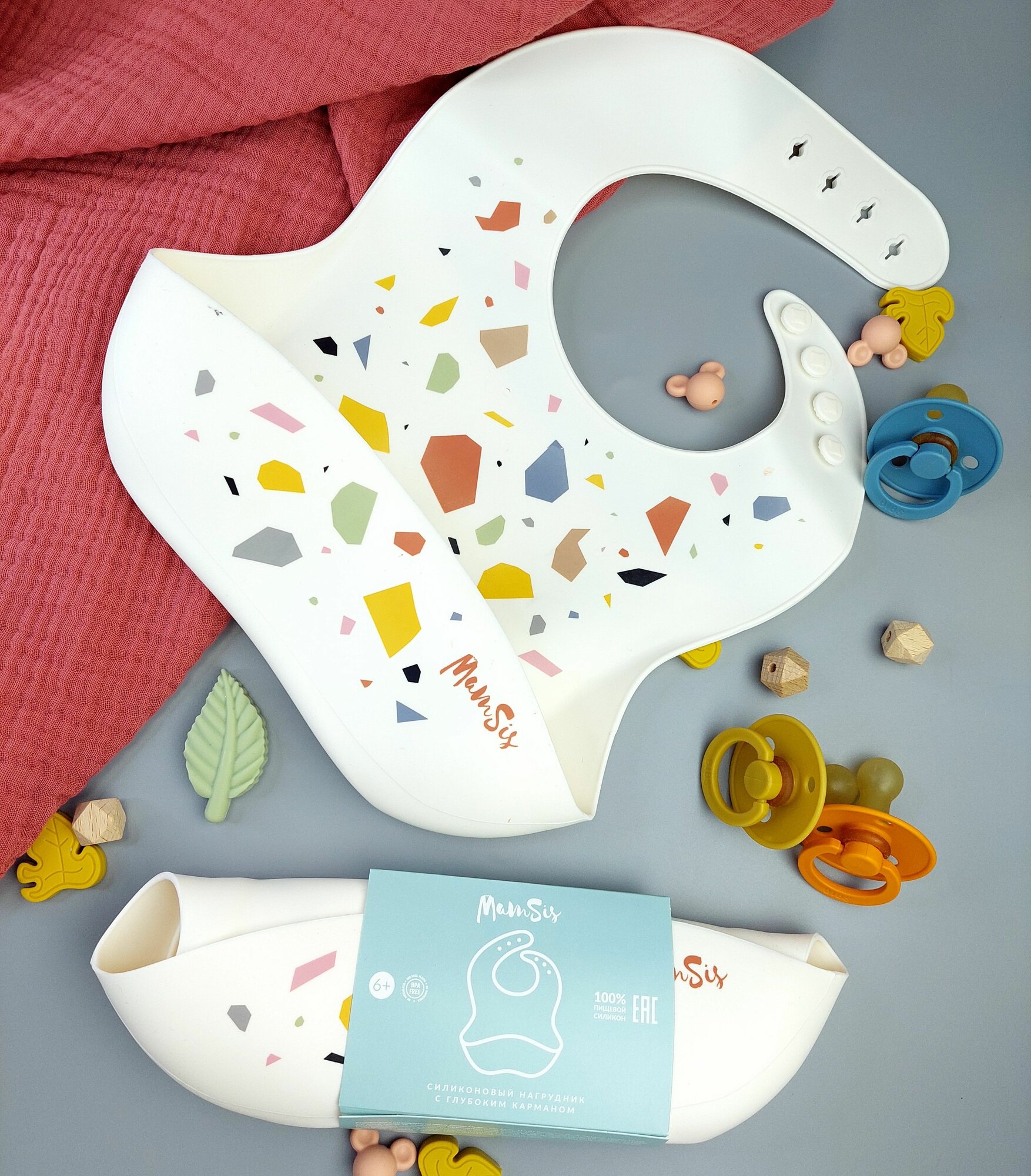 Силиконовый мягкий нагрудник MamSi с глубоким карманом интересное: