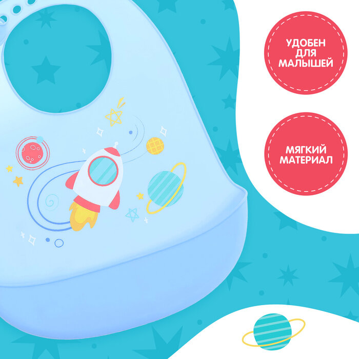 Купить Нагрудник для кормления «Космос», силиконовый, с карманом, цвет голубой