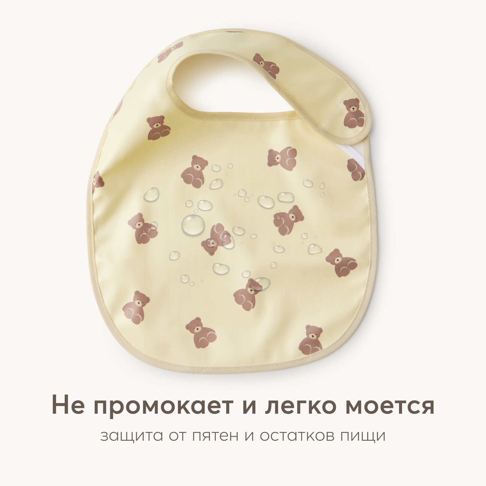 16018, Нагрудник для кормления Happy Baby, слюнявчик для новорожденных, на липучке, набор из 2 фартуков, желтый и белый
