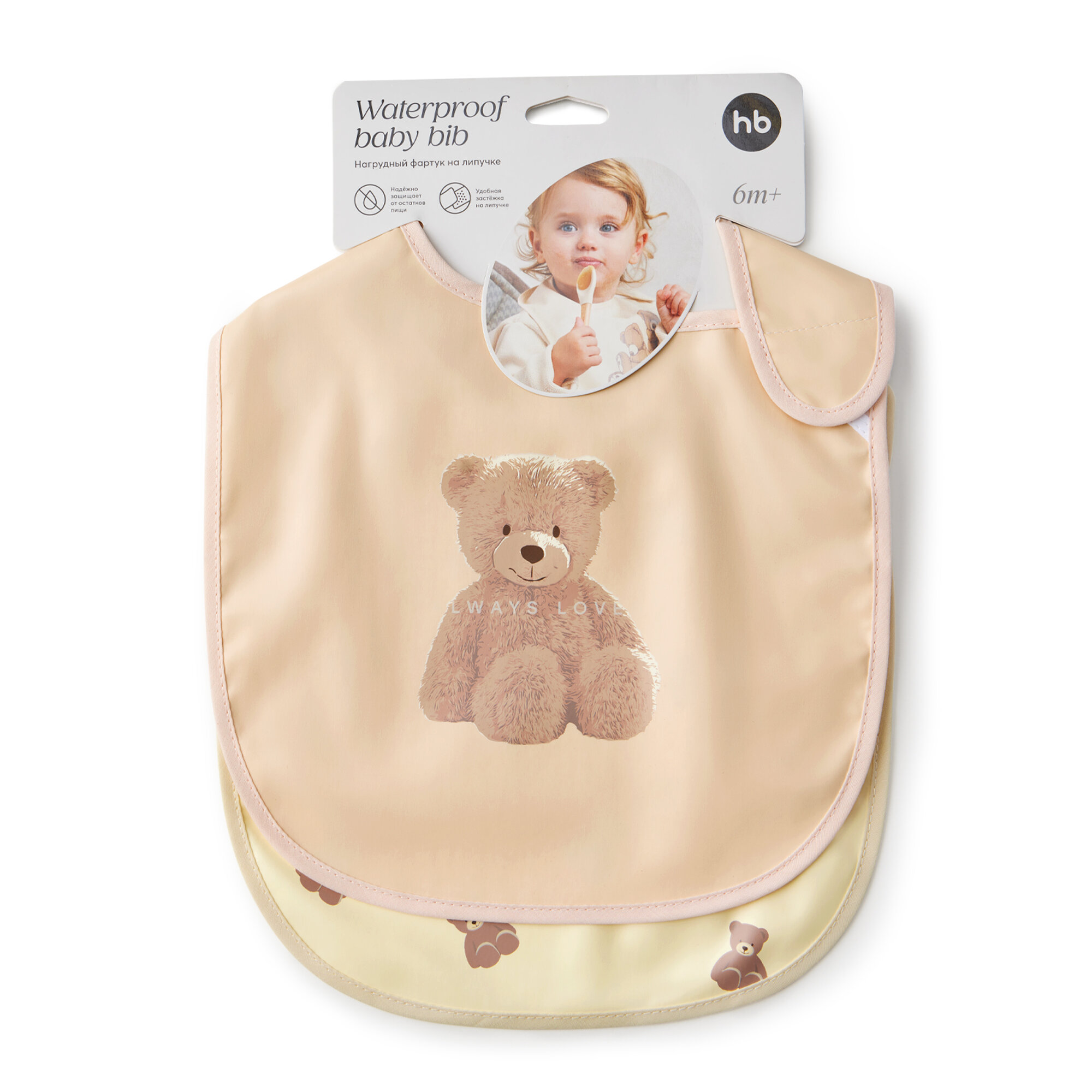 Купить 16018, Нагрудник для кормления Happy Baby, слюнявчик на липучке, набор из 2 фартуков, коричневый с мишкой