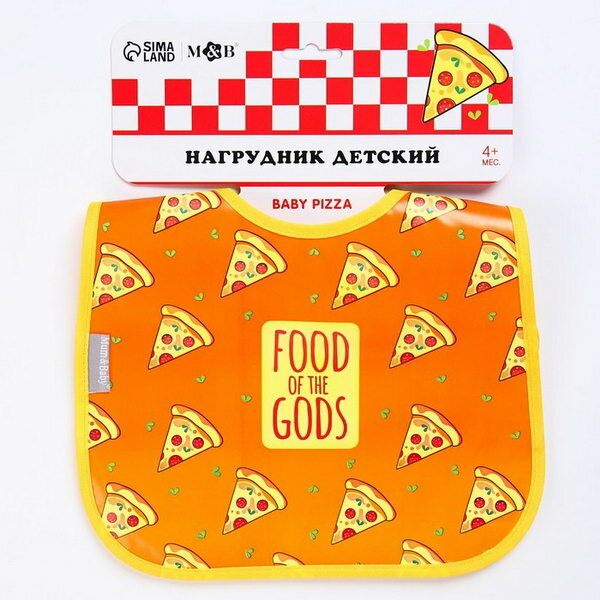 Нагрудник для кормления "Pizza" непромокаемый на липучке, с карманом интересное: