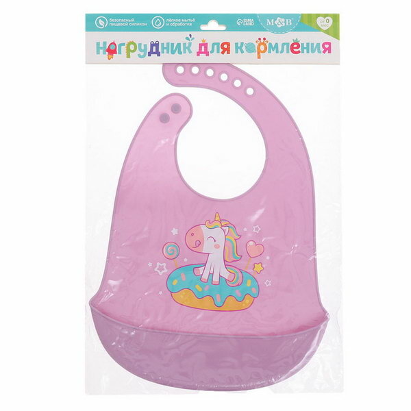 Нагрудник для кормления "Единорог", силиконовый, с карманом, цвет фиолетовый интересное: