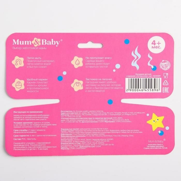 Купить Нагрудник для кормления M&B «тренд. Которусалка» непромокаемый на липучке, с карманом