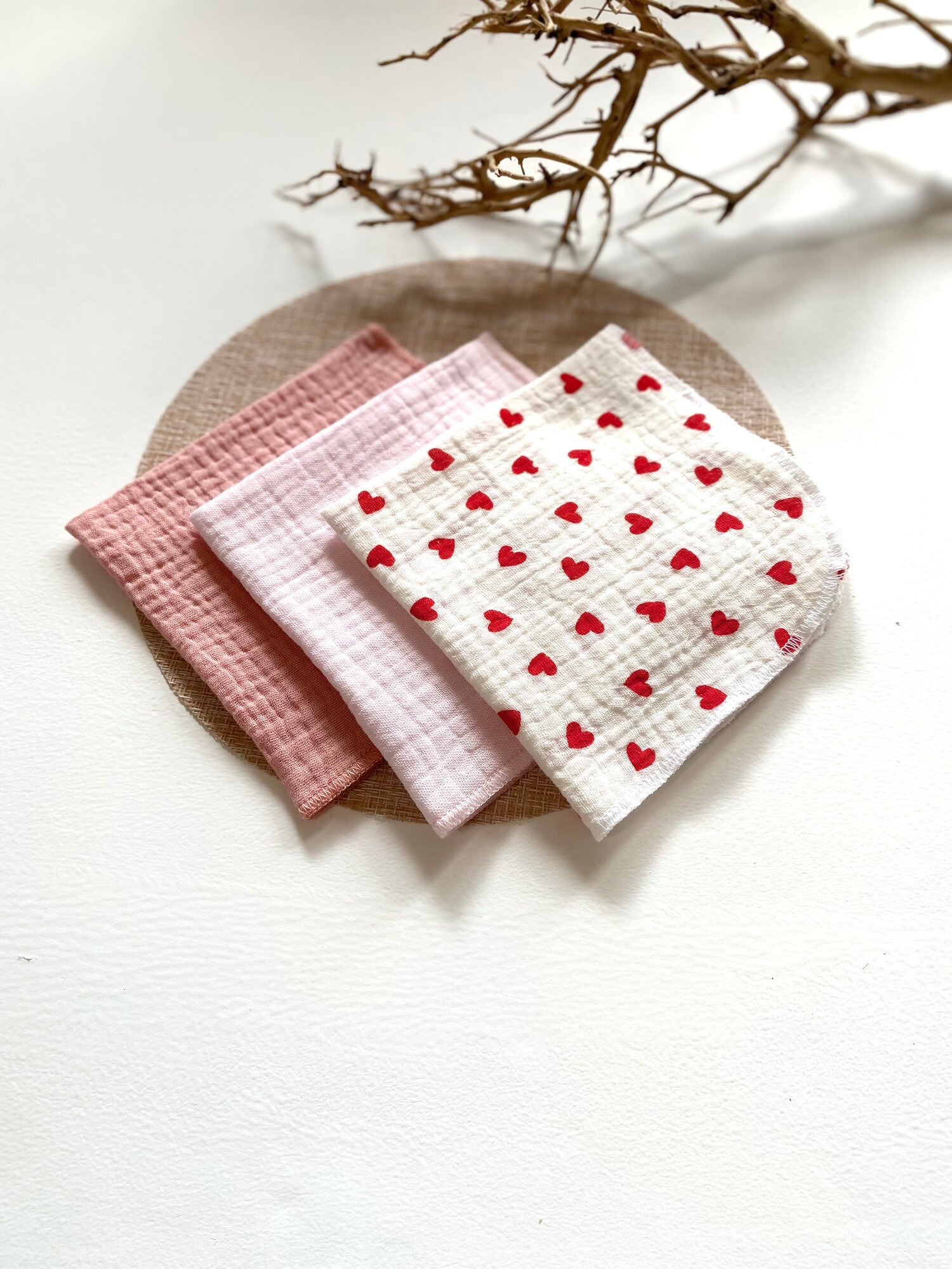Набор платочков 3 шт Состав:100% хлопок, Цвет: розовый, пудровый, сердечки интересное: