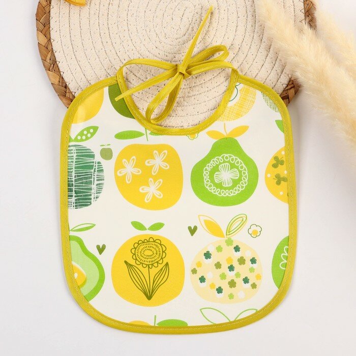 Купить Нагрудник из нетканого полотна с ПВХ покрытием «Яблоки», зеленый, 20×22 см