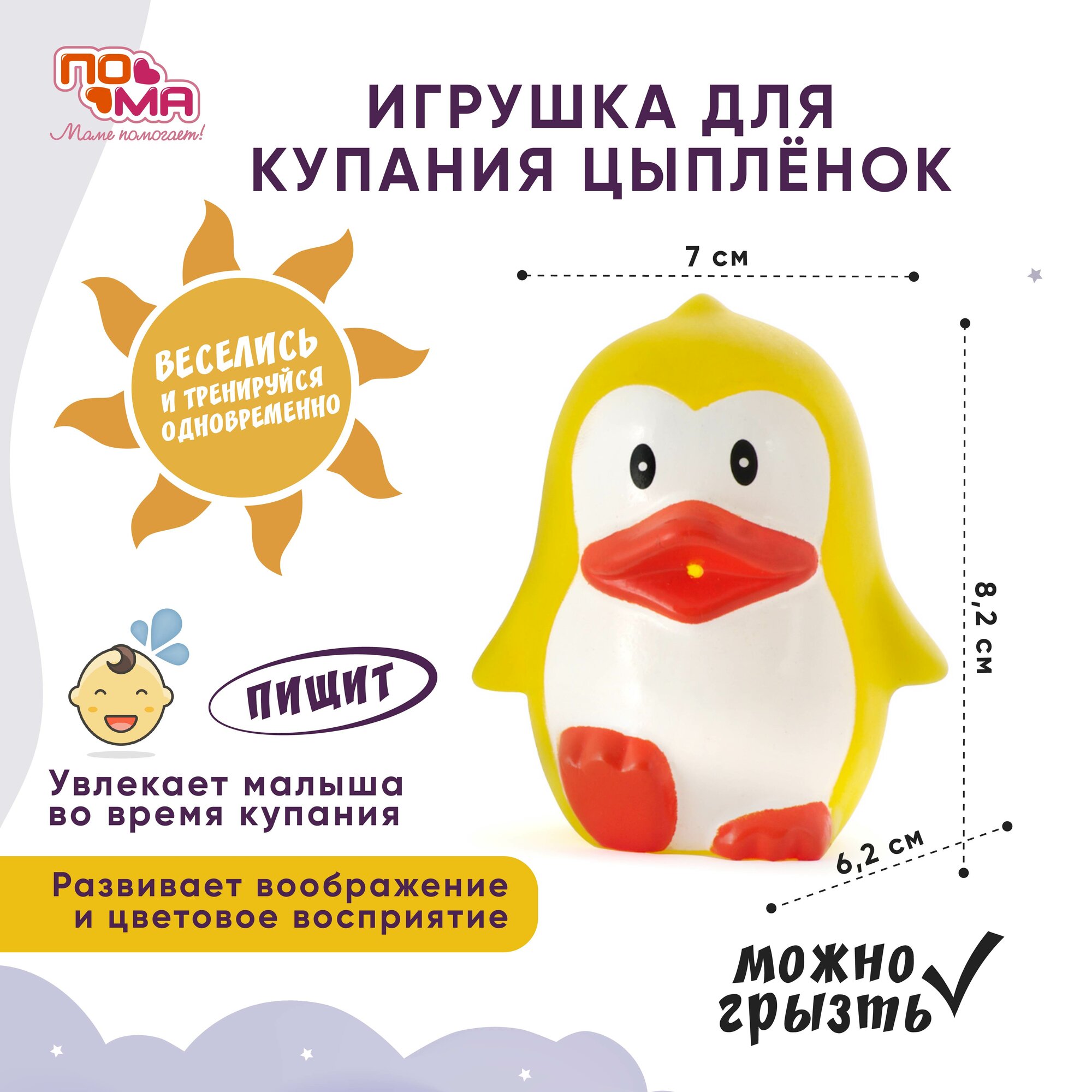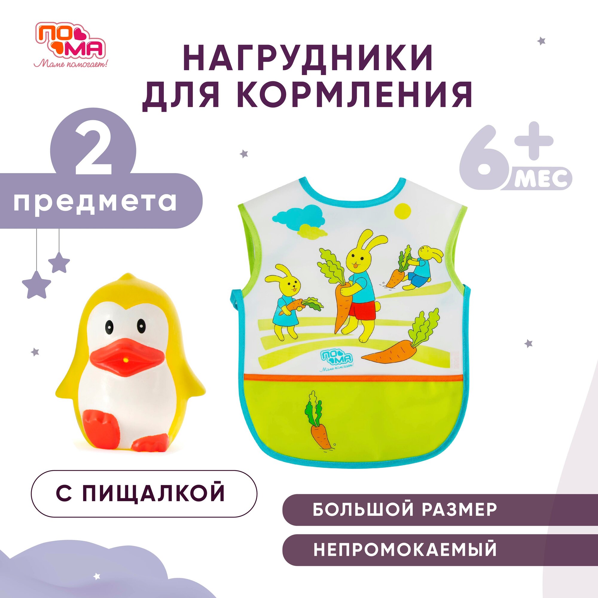 Пома набор: Слюнявчик клеёнчатый, 1шт, Игрушка "Цыпленок-несмышленыш", 1 шт. интересное: