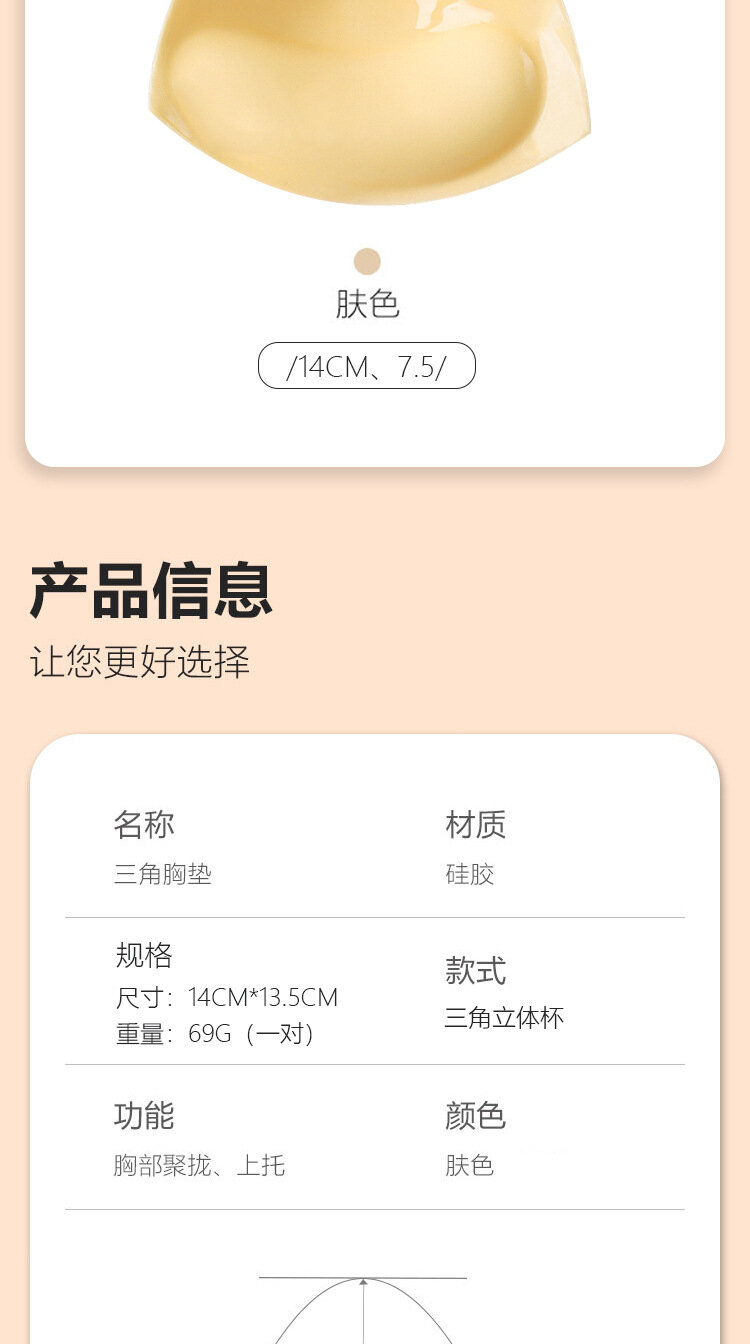 Накладка на грудь Net Celebrity Hot Style Triangle, бесшовная, тон кожи, большой размер