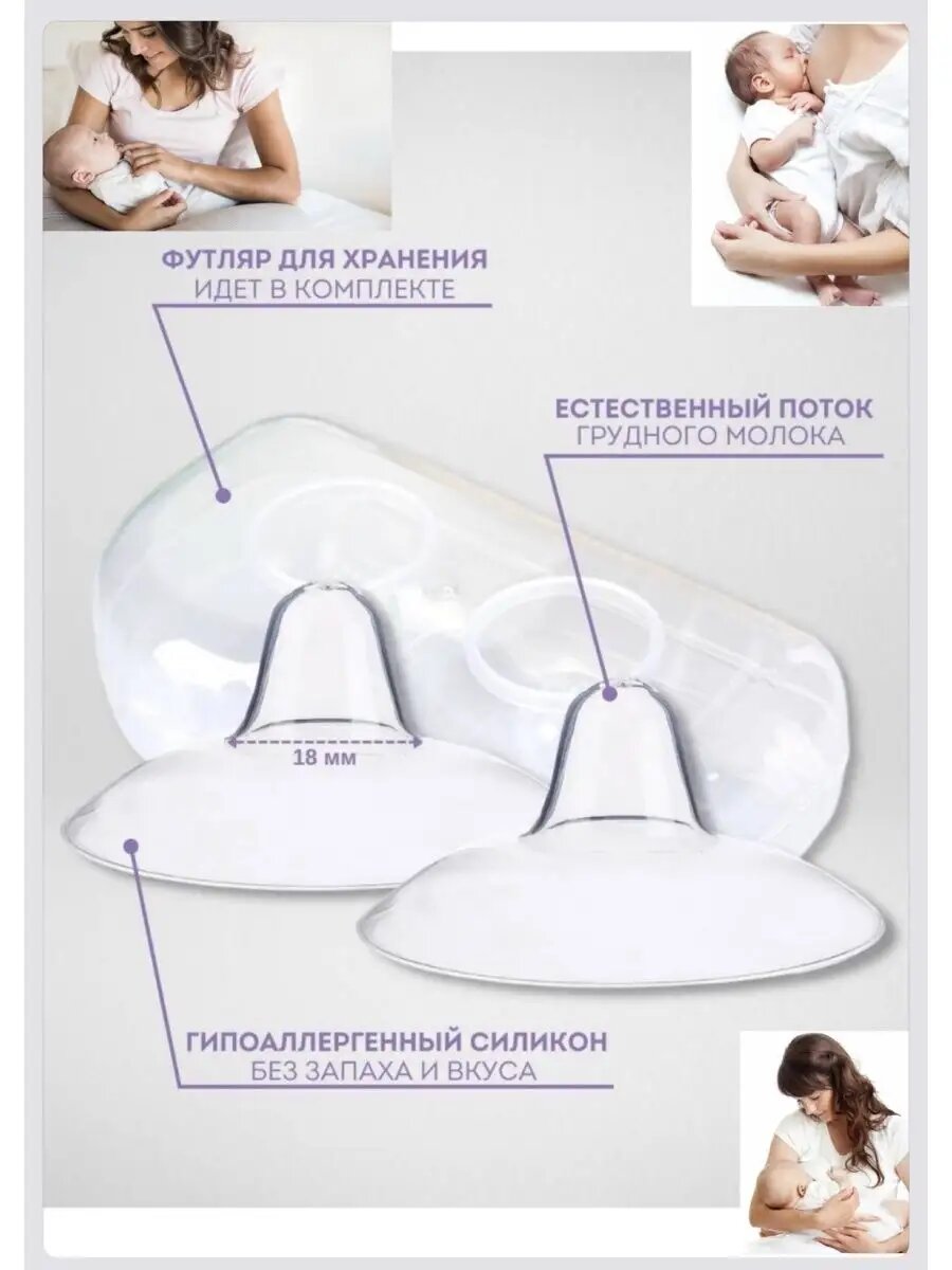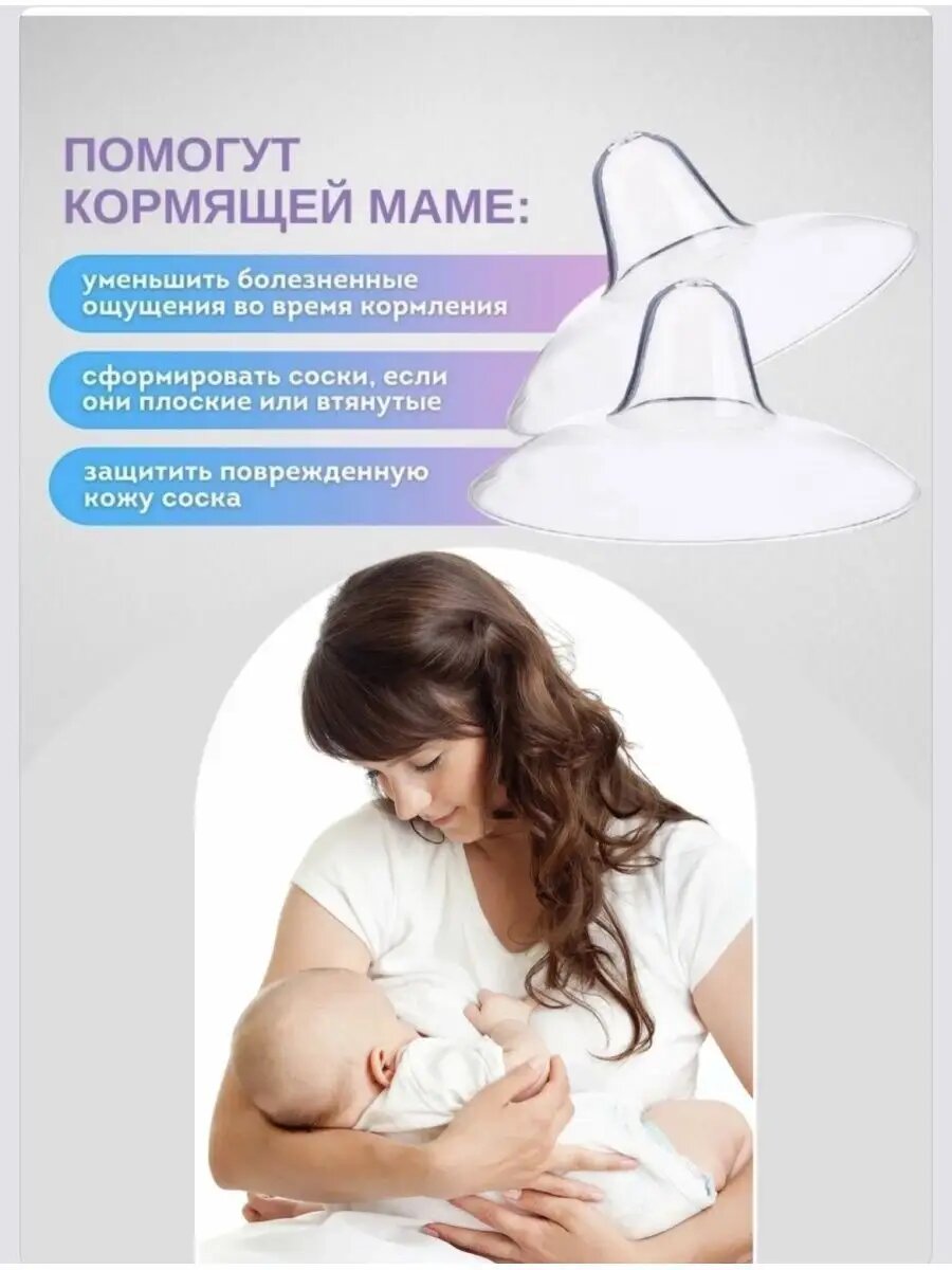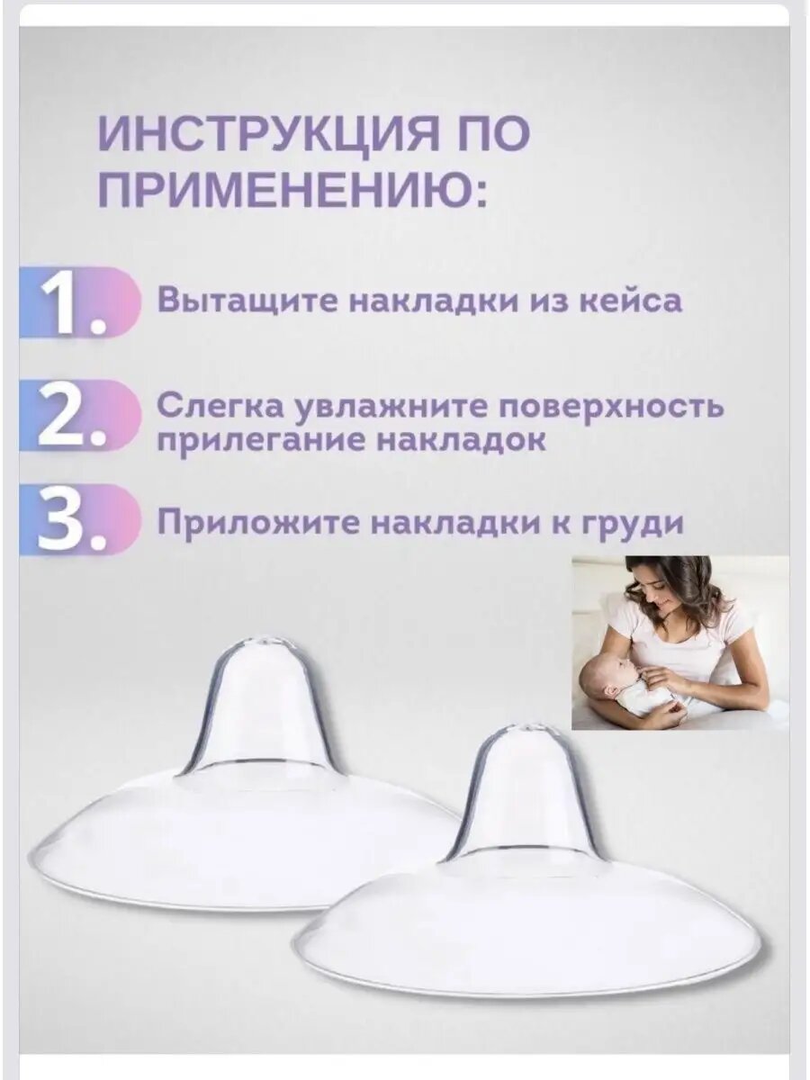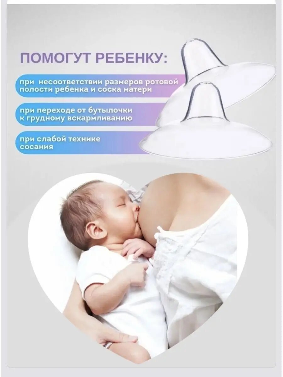 Накладки на грудь для кормления малышей силиконовые многоразовые, набор 2 шт, размер L