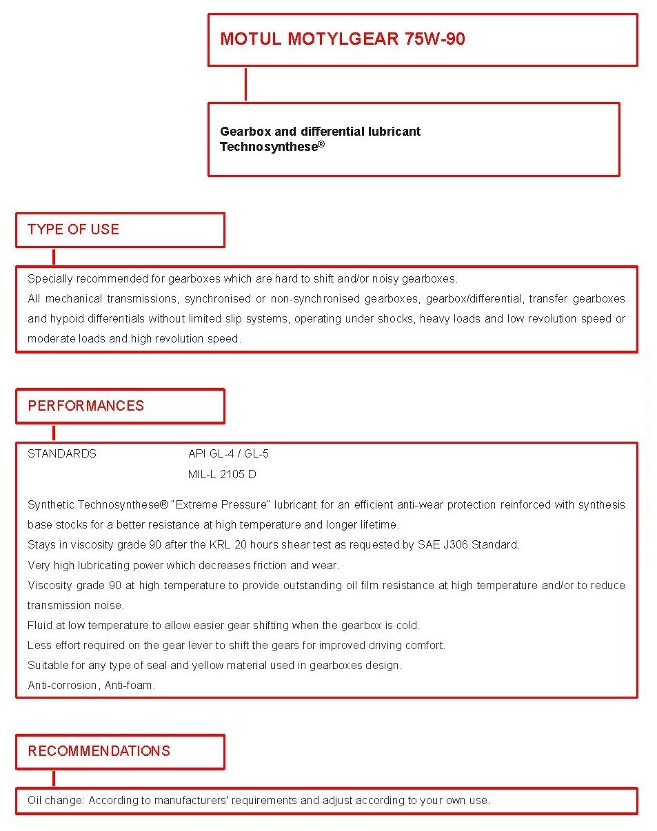 Motylgear 75W-90 Technosynt. 1L (100093, 105783) MOTUL арт. 109055