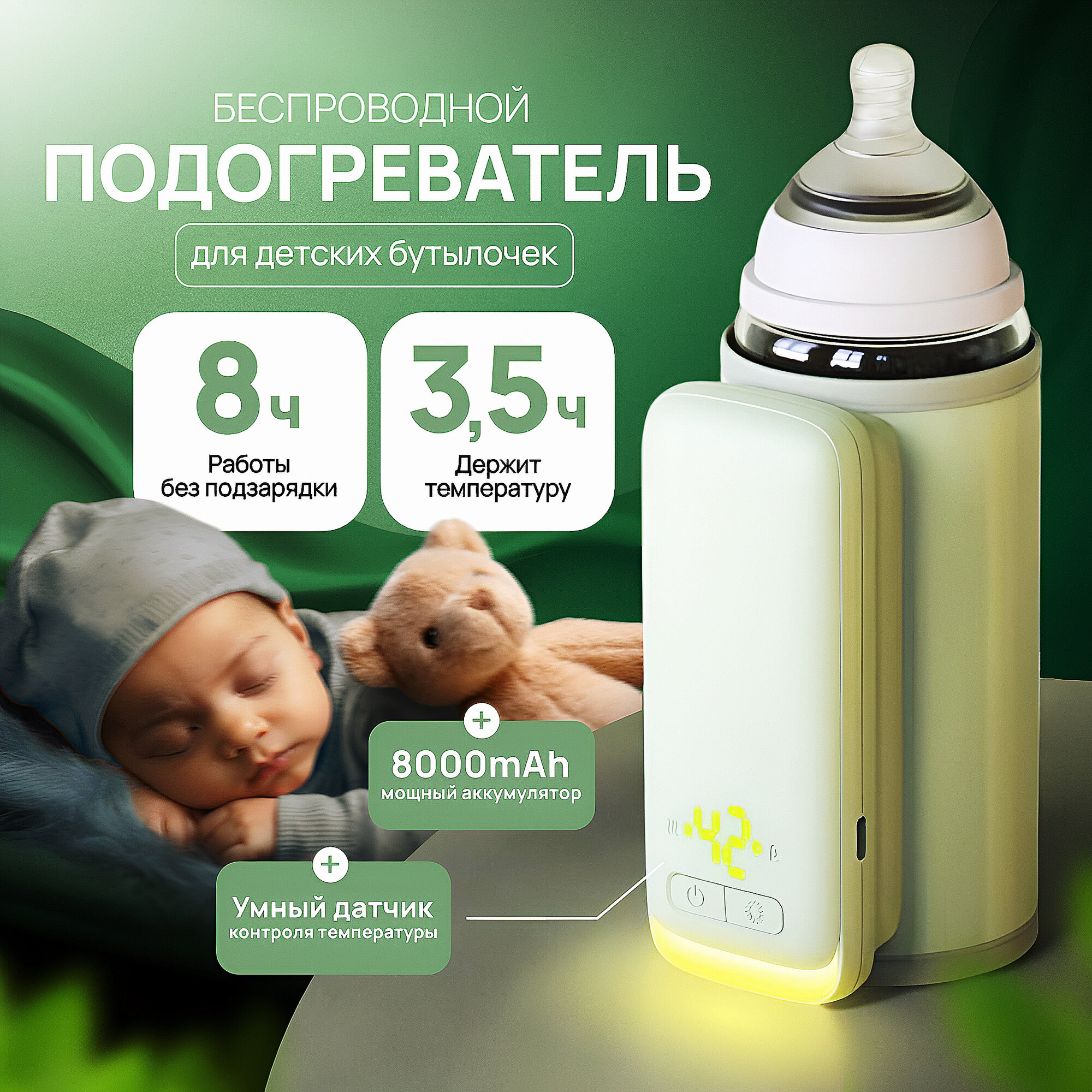 Подогреватель для бутылочек WellHome , портативный, 8000 mAh интересное: