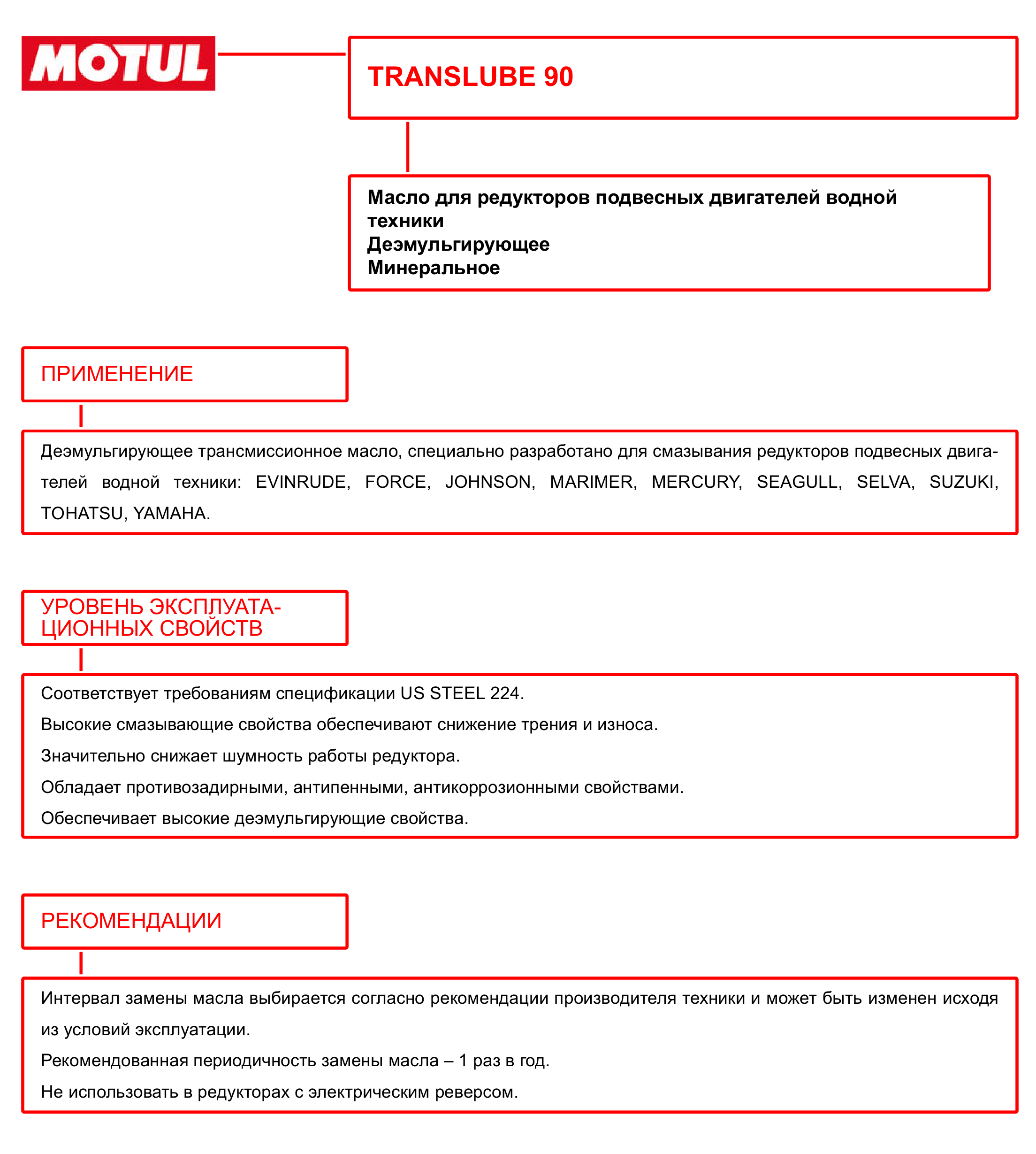 Трансмиссионное масло MOTUL Translube 90 для лодок, 0.270 л (замена для 102950, 107791)