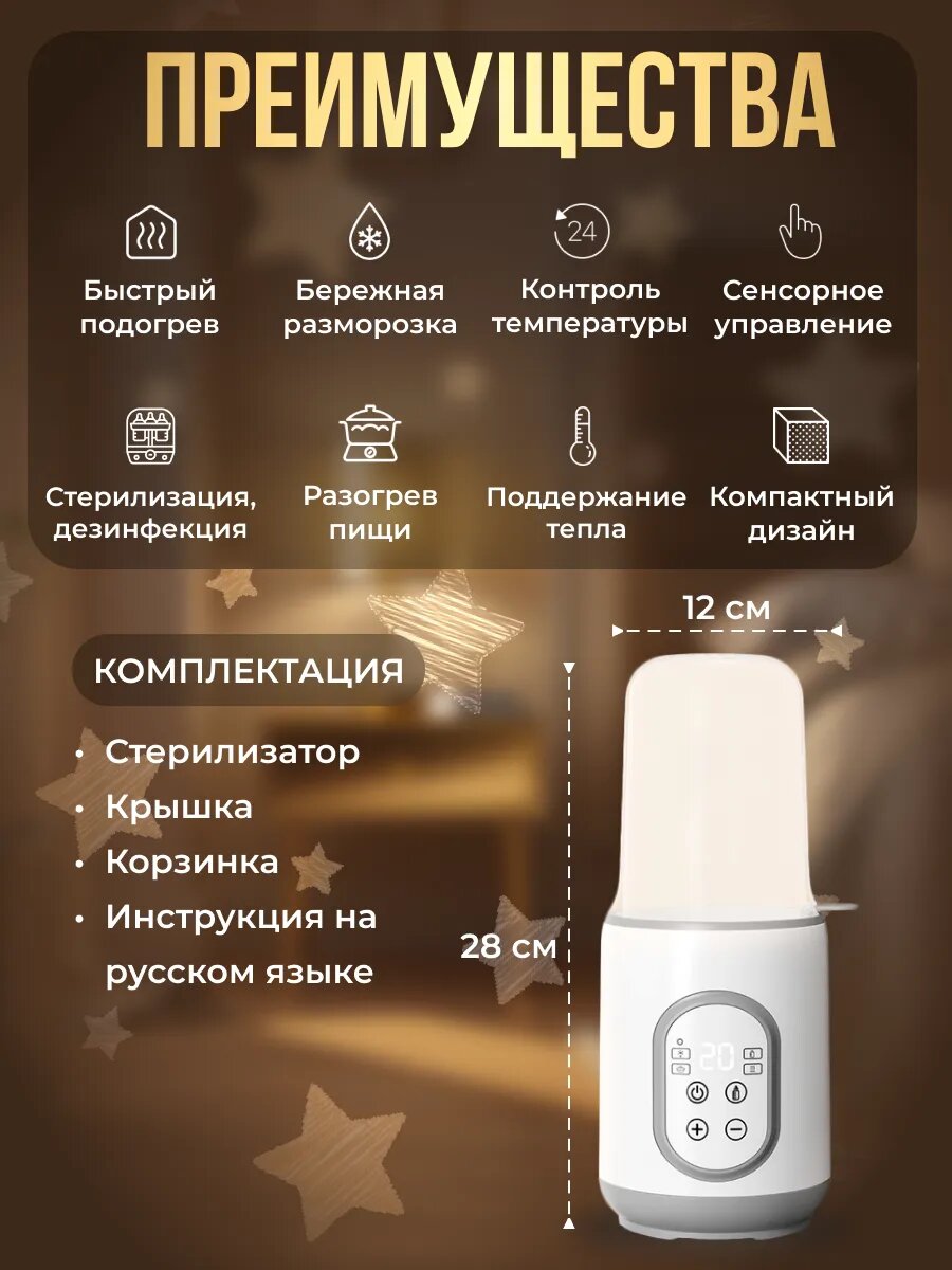 Подогреватель и стерилизатор бутылочек, с функцией разморозки, электронное управление интересное: