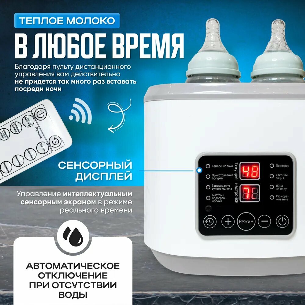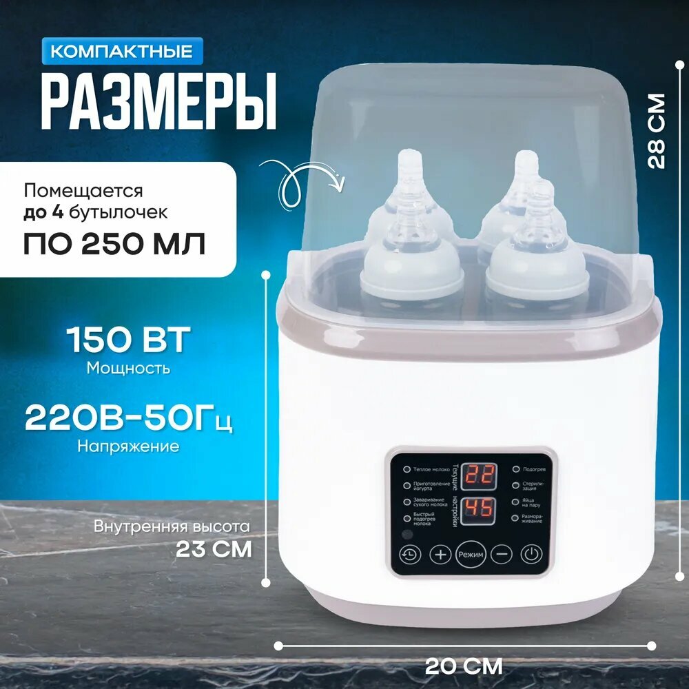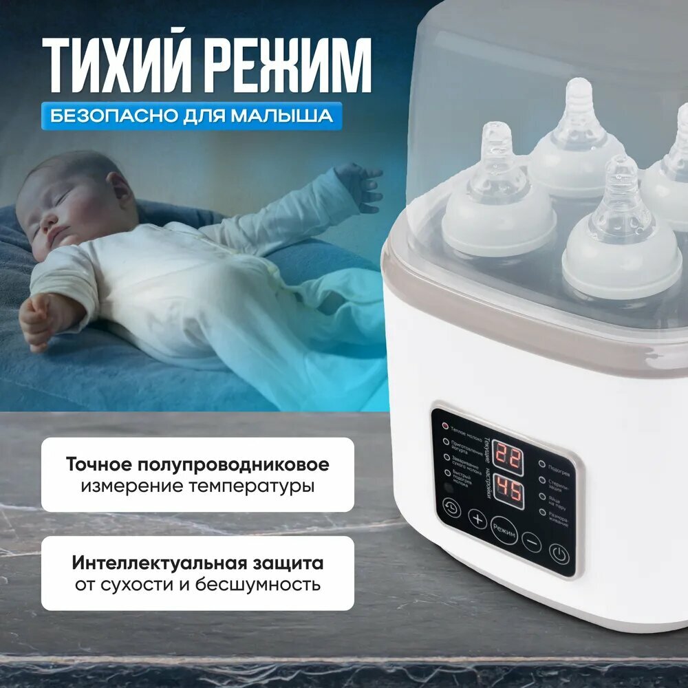 Baby Подогреватель для бутылочек "Miconon", паровой, для стерилизации, 4 режима, светло-серый интересное: