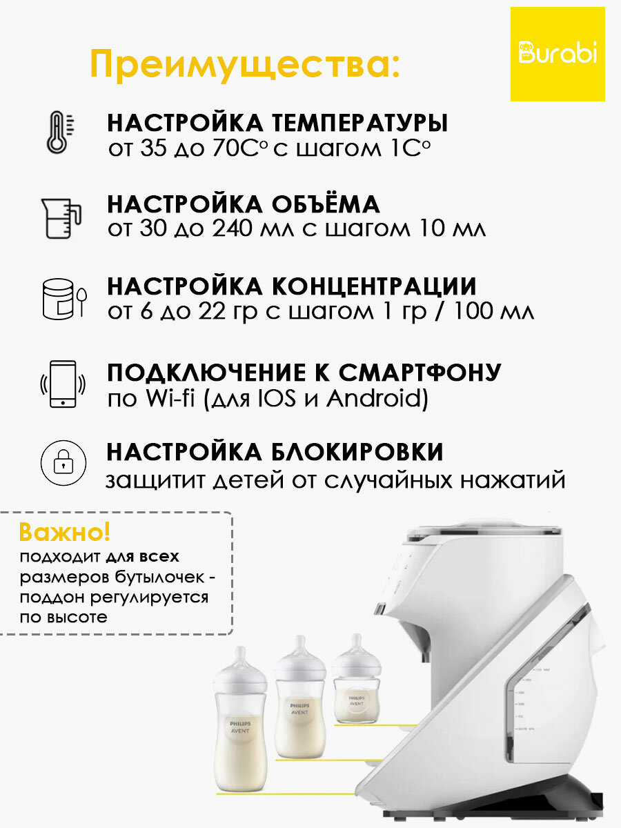 BURABI PLUS Milk Maker машина для приготовления детской молочной смеси с WI-FI и управления со смартфона интересное: