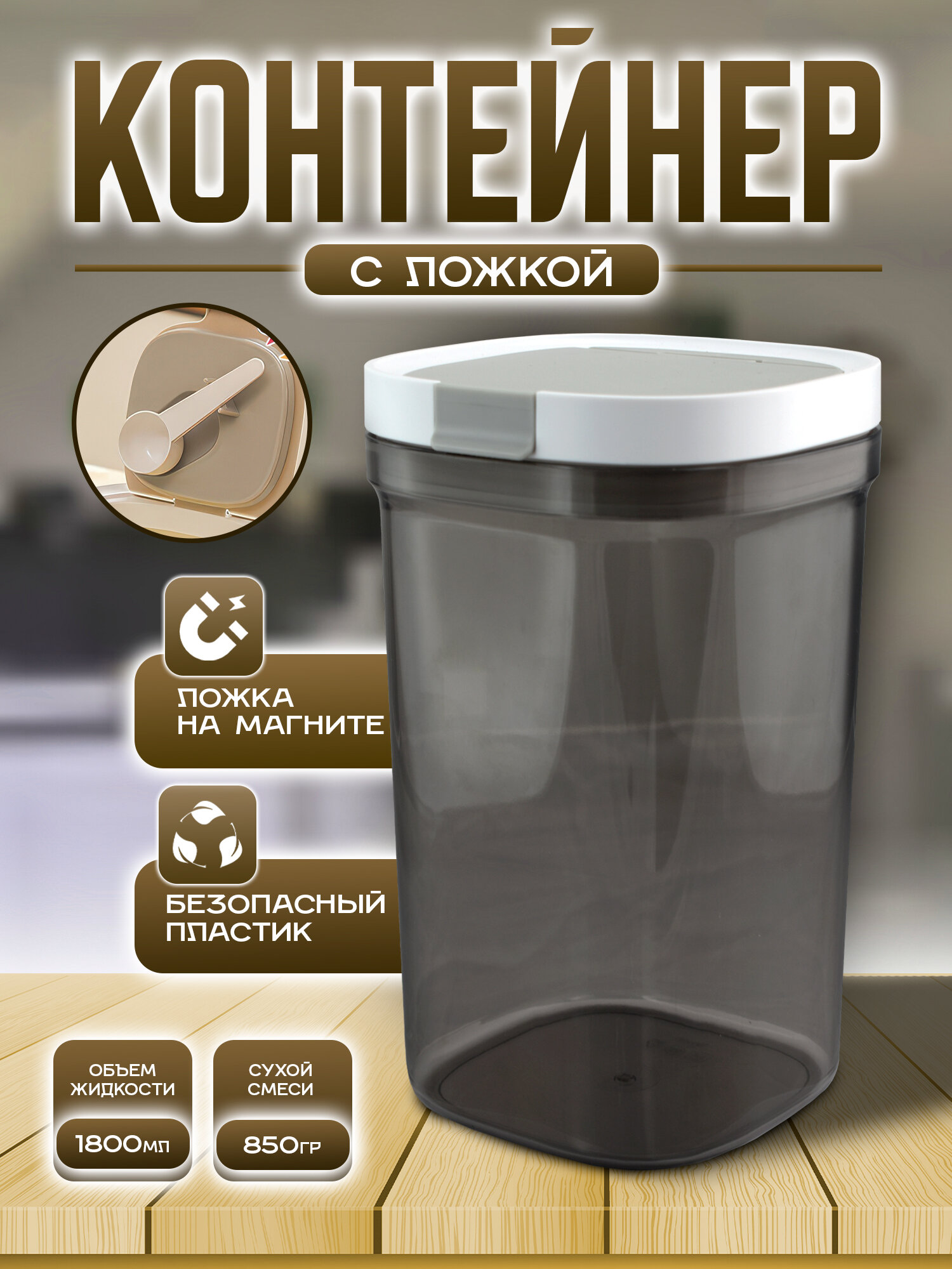 Контейнер для сухой смеси IBRICO с ложкой, 1300 мл, герметичный