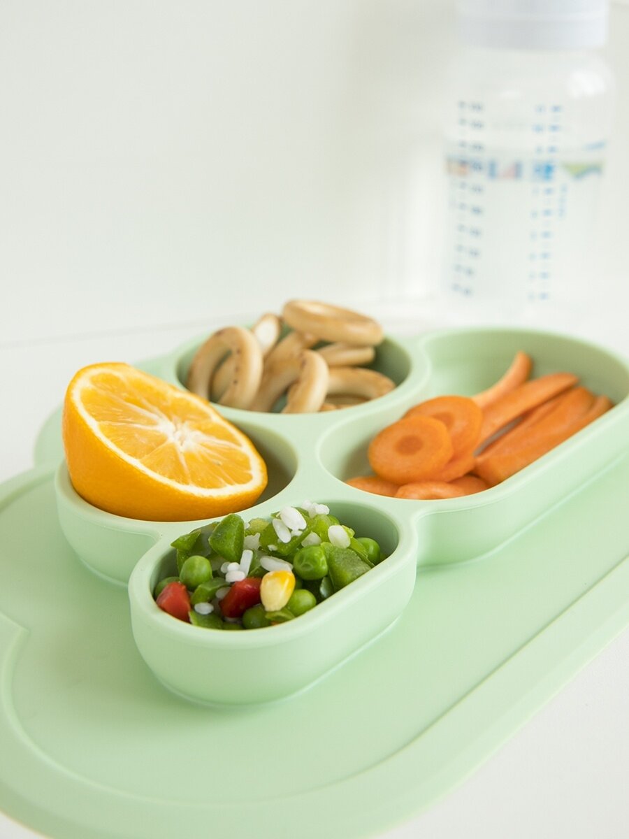 Тарелка детская силиконовая с секциями на присоске, Tessolo Home салатовый интересное: