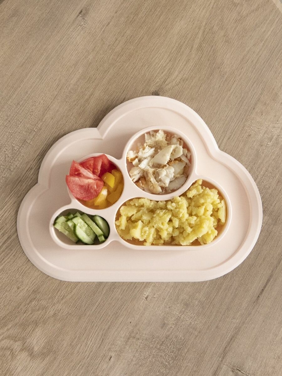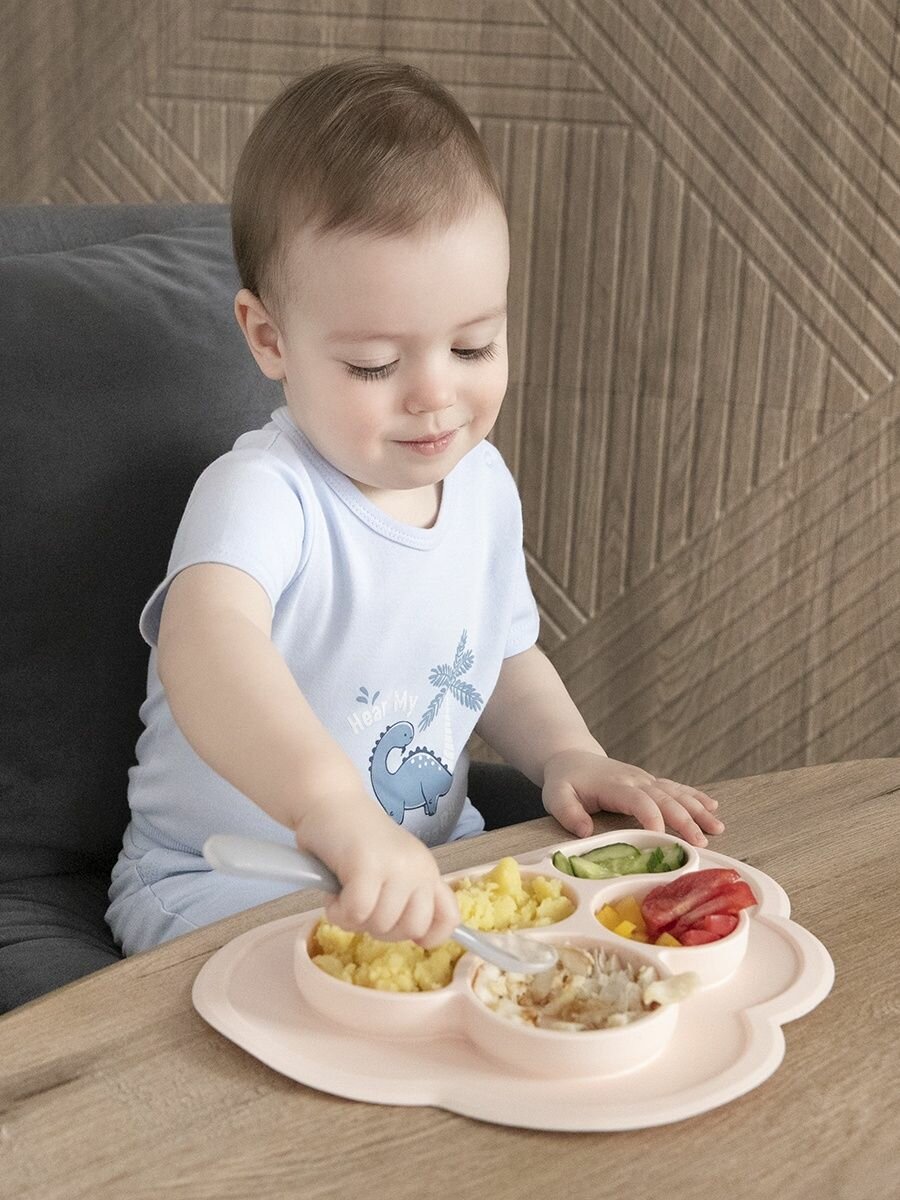 Тарелка детская силиконовая с секциями на присоске, Tessolo Home персик интересное: