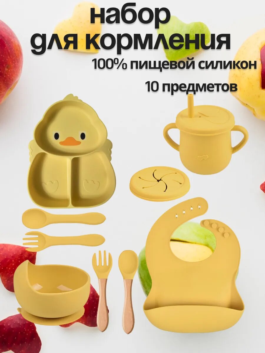 Набор посуды Eco Baby, для кормления, тарелки на присосках 10 предм, силикон, гипоаллергенный, желтый интересное: