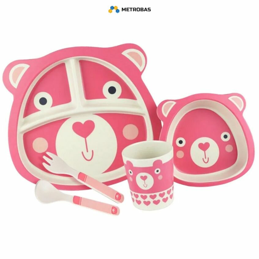 Купить Набор детской посуды, "Медвежонок", тарелка, миска, ложка, вилка, стакан