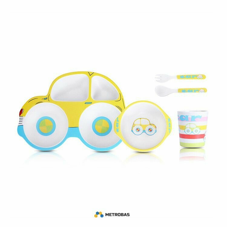 Купить Детский столовый набор, "Автомобиль", тарелка, миска, ложка, вилка, стакан