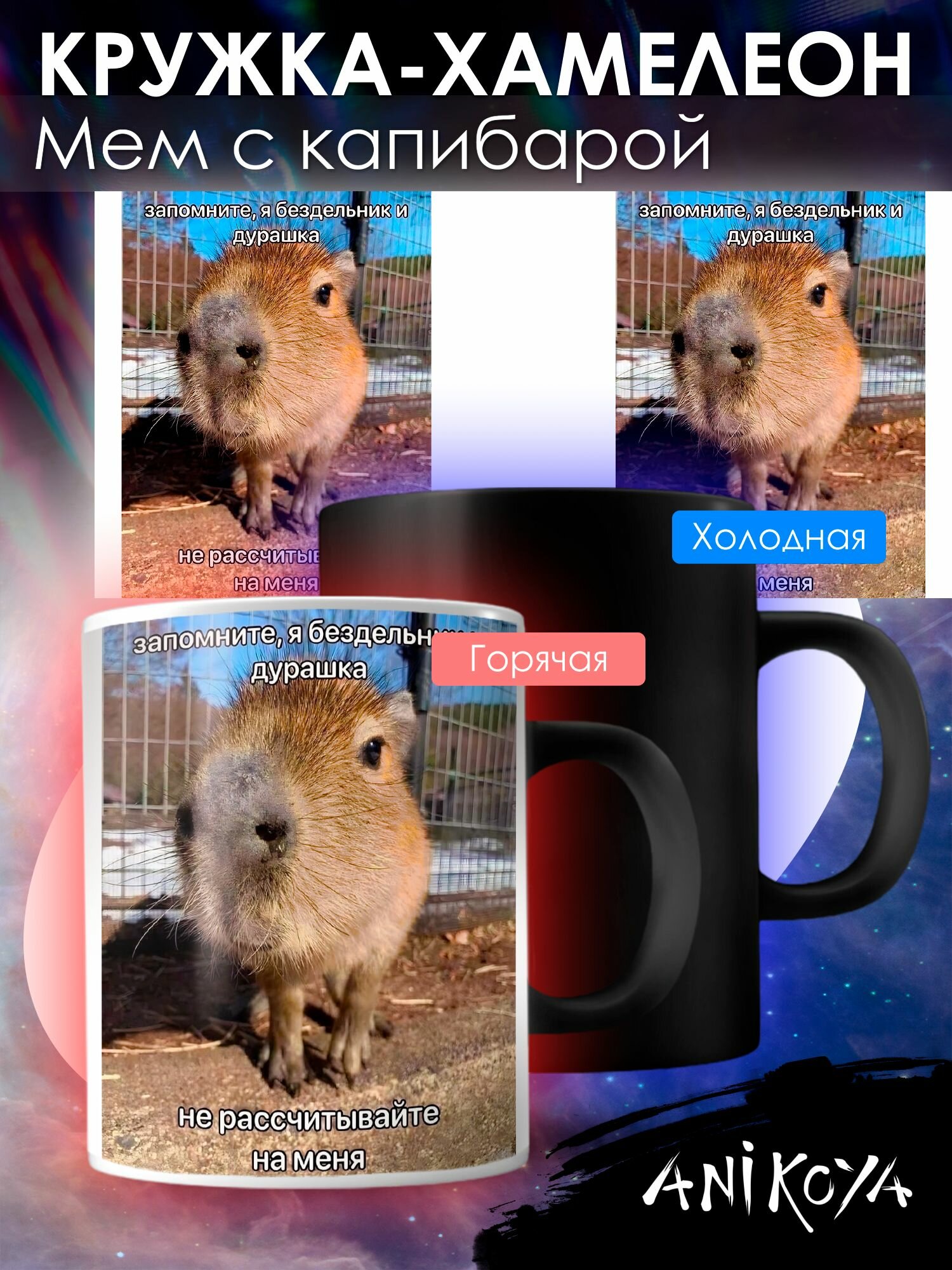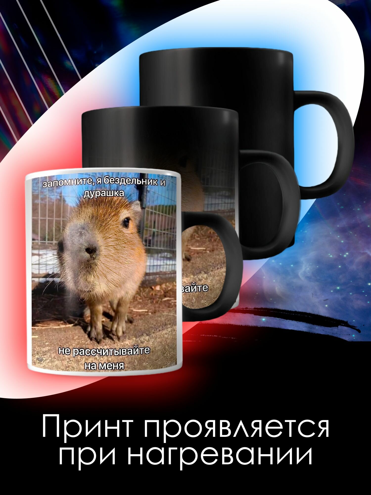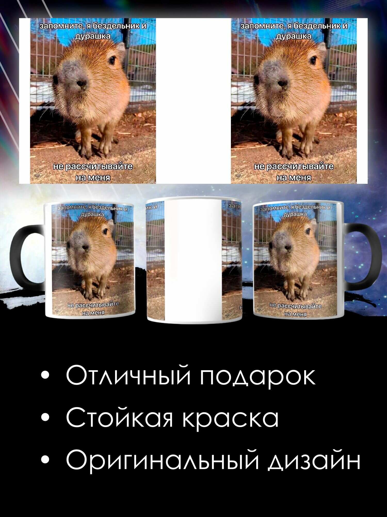 Кружка хамелеон капибара с приколом мем