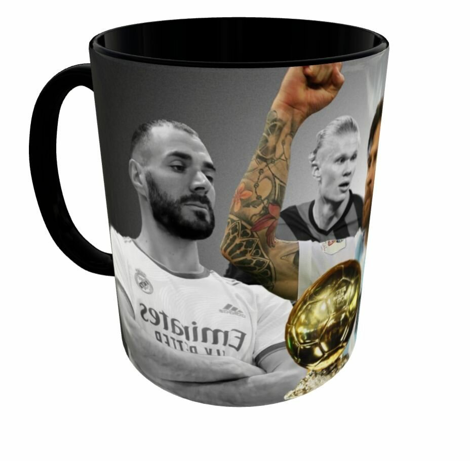 Купить Кружка премиум класса черная Лионель Месси Золотой мяч, Мусиала Бавария, Мартинес Астон, Эдегор Арсенал, Салах Ливерпуль, Букайо Сака Арсенал, авторский уникальный бокал, 330 мл