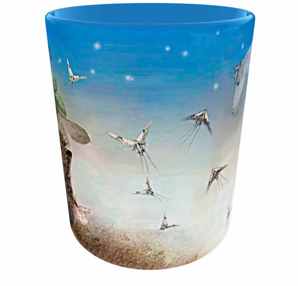 Уникальная кружка премиум класса /Ежик в тумане, Светлячок, Лошадь, дубовый лист, узелок/Авторский Коллекционный бокал ручной работы Эксклюзив Новинка Синяя - уникальная 330 мл