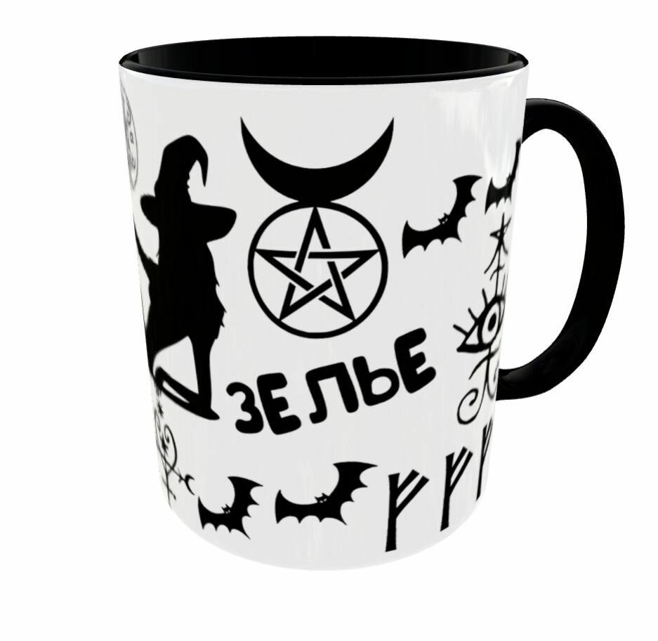 Купить Кружка чёрно магическая Уникальная Ведьмино Зелье / Ведьмы не стареют / Эксклюзив, Авторская, ручная работа, Заряжена на магию и колдовство, богатство и удачу, 330 мл