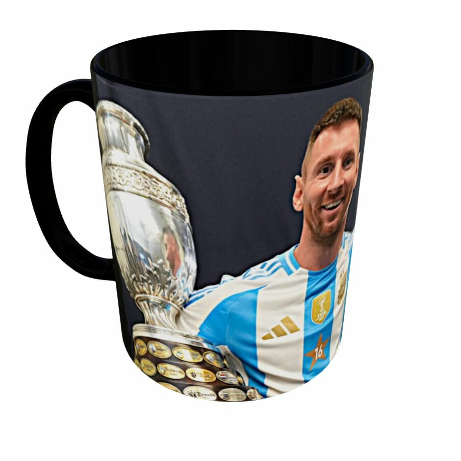 Кружка премиум класса черная Лионель Месси Золотой мяч, Мусиала Бавария, Мартинес Астон, Эдегор Арсенал, Салах Ливерпуль, Букайо Сака Арсенал, авторский уникальный бокал, 330 мл