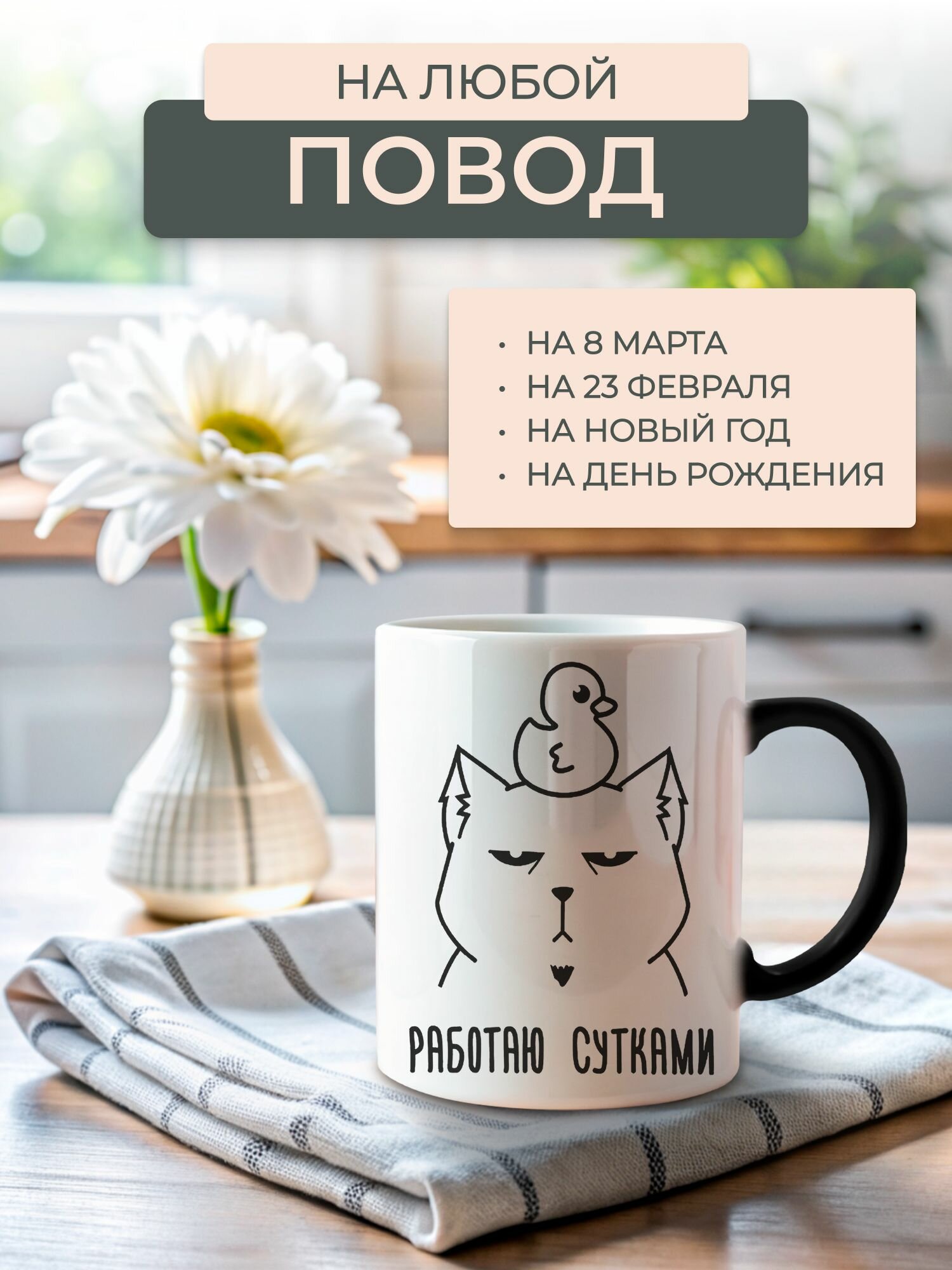 СохранитьКружка хамелеон с принтом работаю сутками мем интересное: