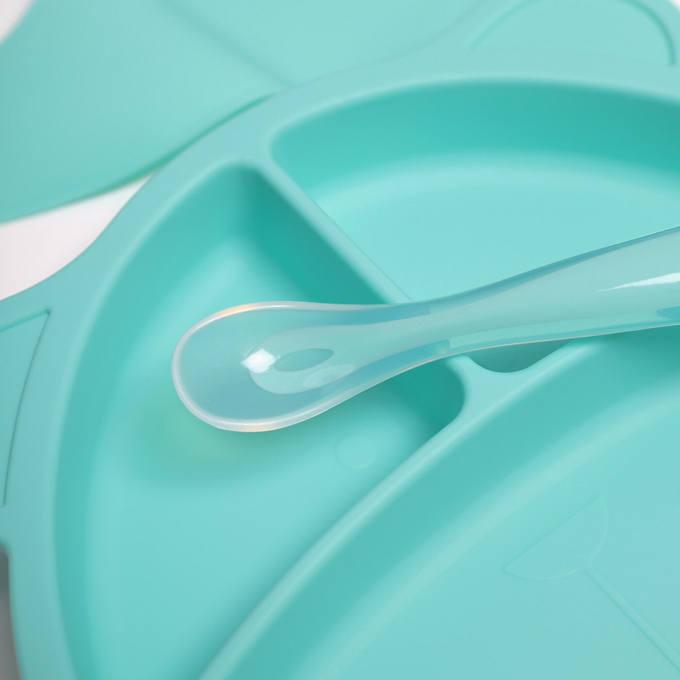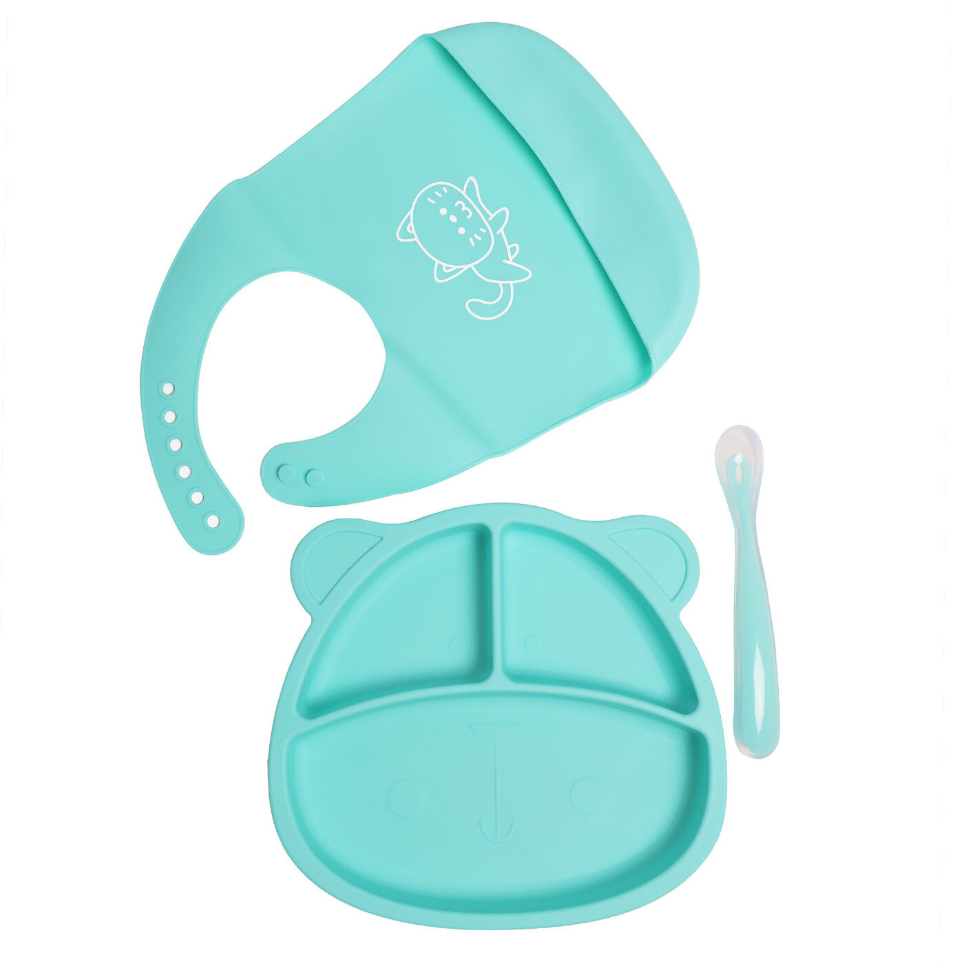 Купить Тарелка на присоске детская силиконовая с секциями+ нагрудник + ложка для кормления малышей/ Набор детсокй посуды Baby Nice