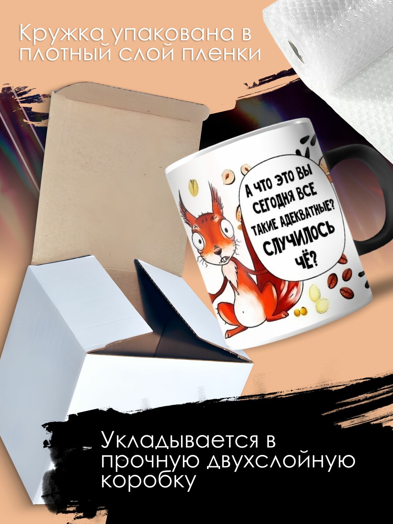 СохранитьКружка Хамелеон с принтом Белка с надписью интересное: