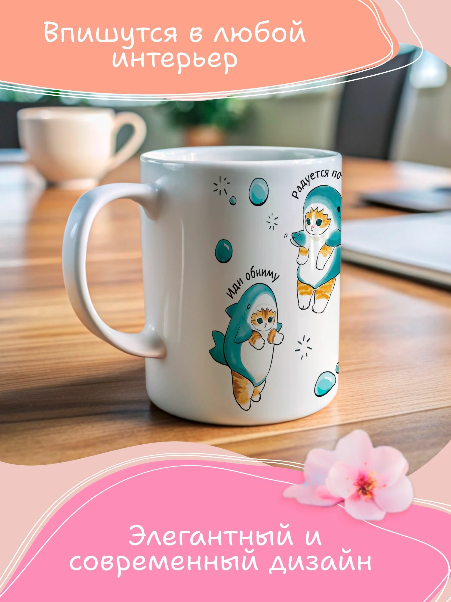 Кружка с принтом Кот Акула фразы интересное: