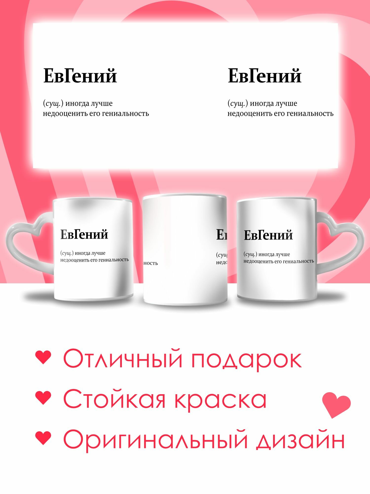 Ниже Вы можете прочитать отзывы на Кружка с приколом именная Евгений, ознакомится с подробными характеристиками, посмотреть интересные обзоры и фотографии на Кружка с приколом именная Евгений.