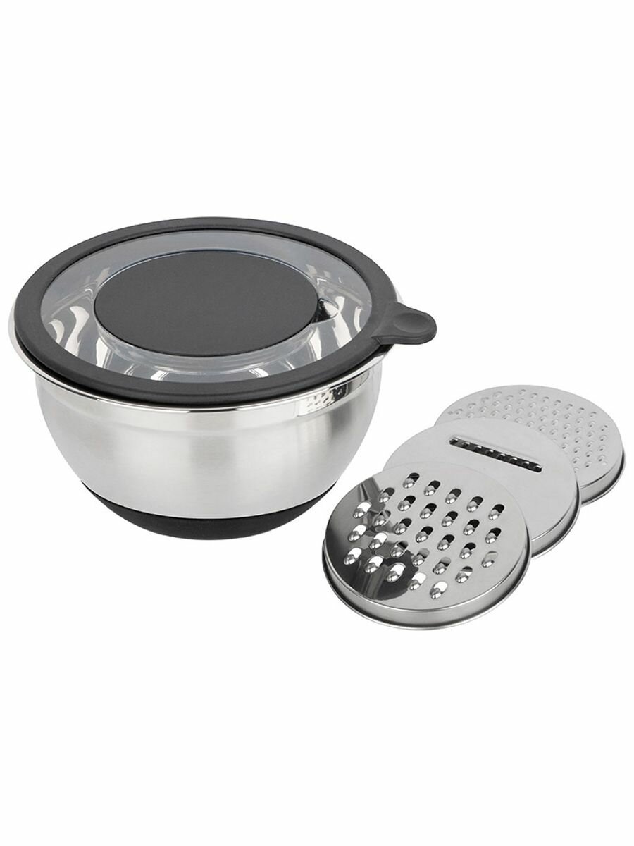 Купить Миска 2,8 л AMARENA из нерж стали с крышкой-тёркой (3 тёрки)