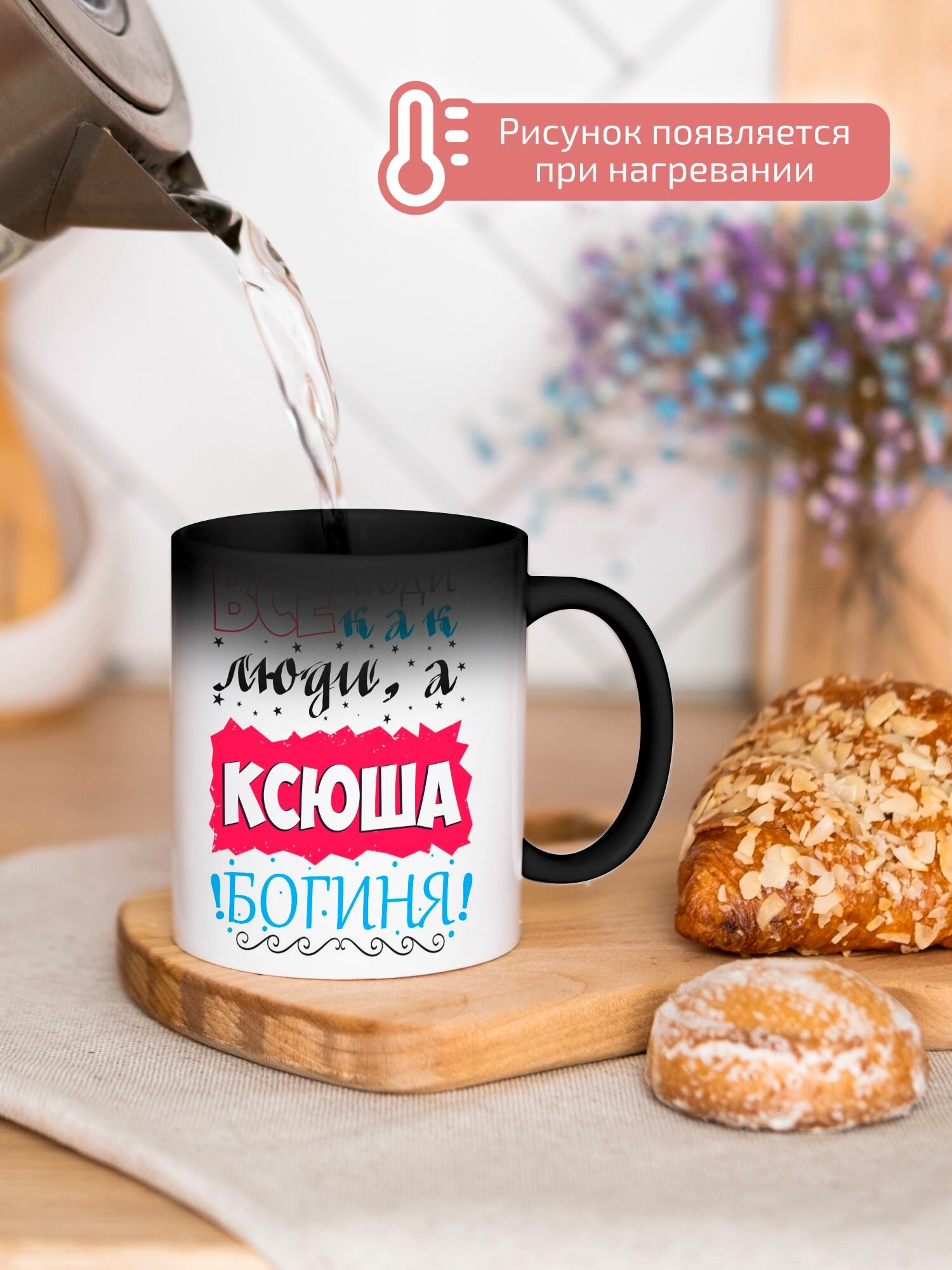 Кружка хамелеон с принтом Ксюша всегда права