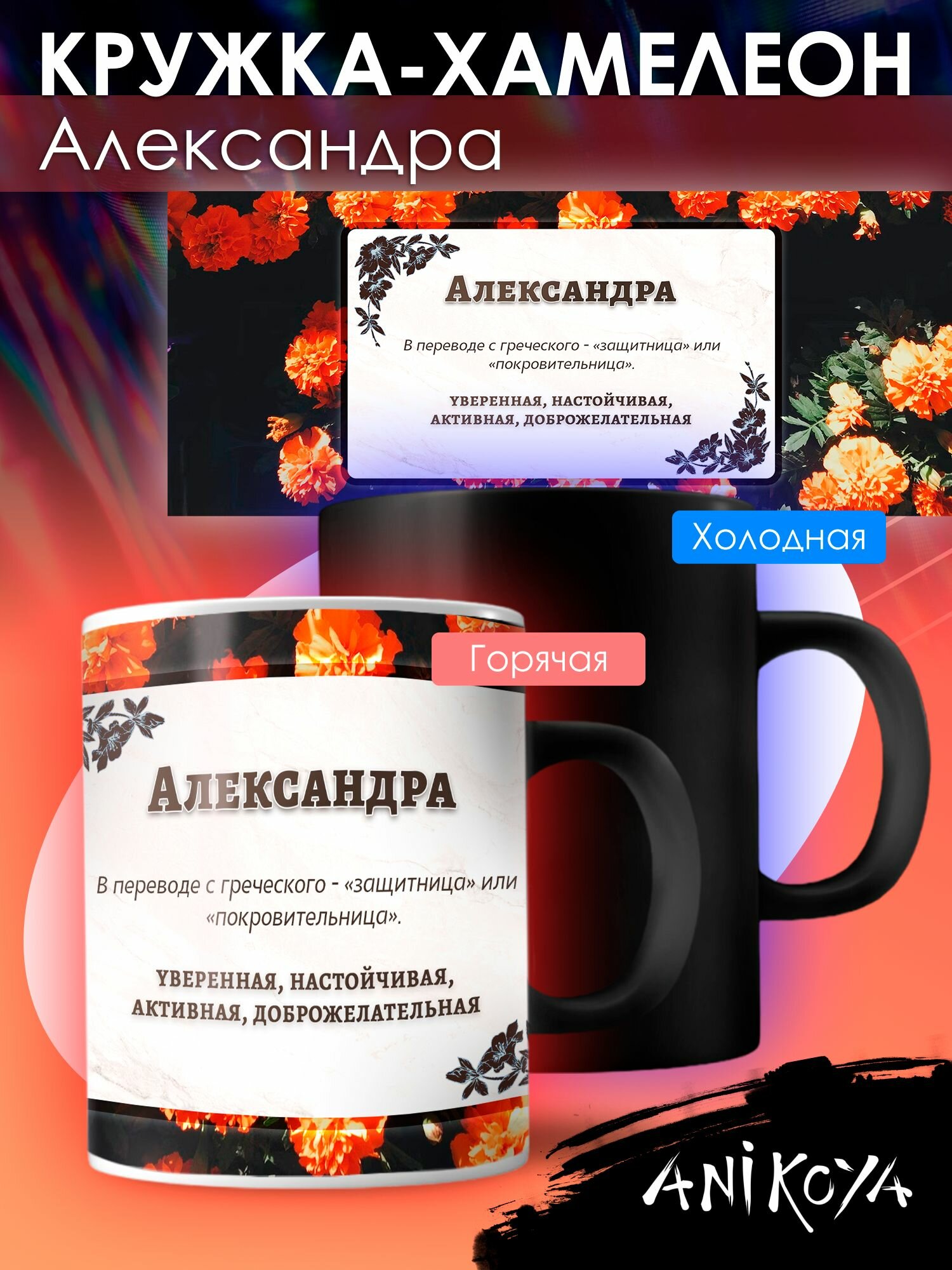СохранитьКружка Хамелеон с принтом именная Александра интересное: