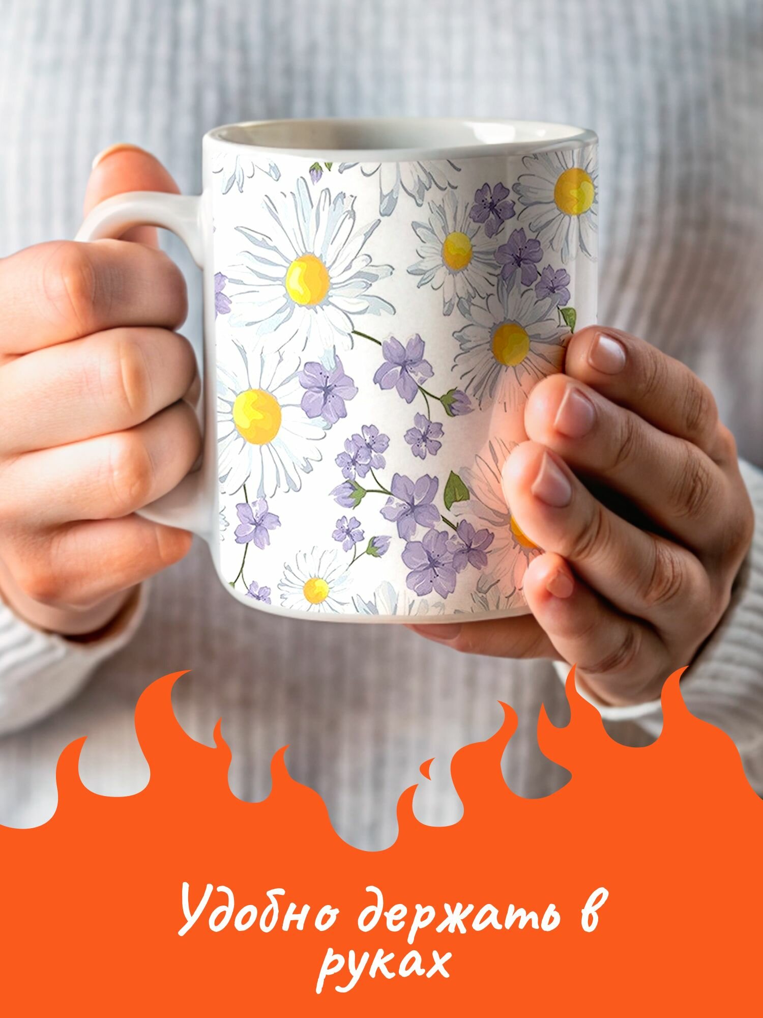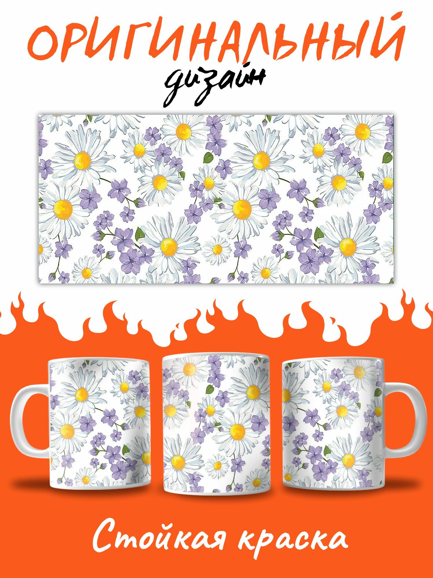 Кружка с принтом цветы ромашки интересное: