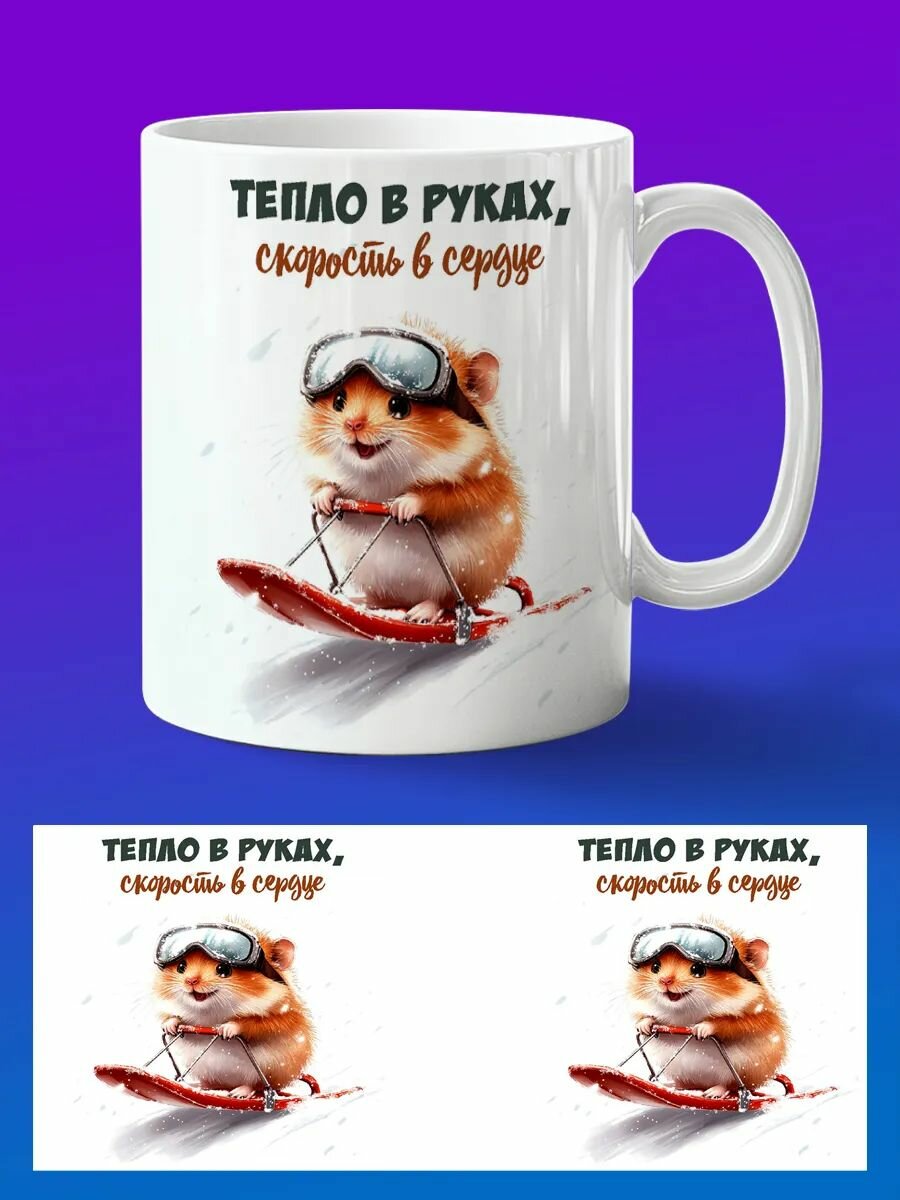 Кружка Хомяк на санках интересное: