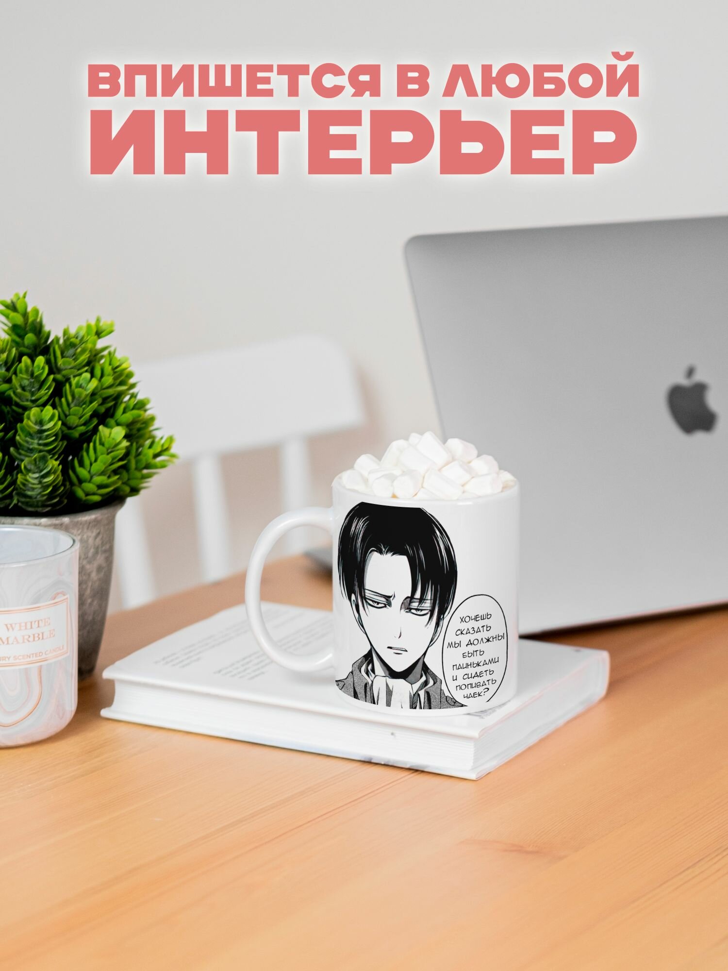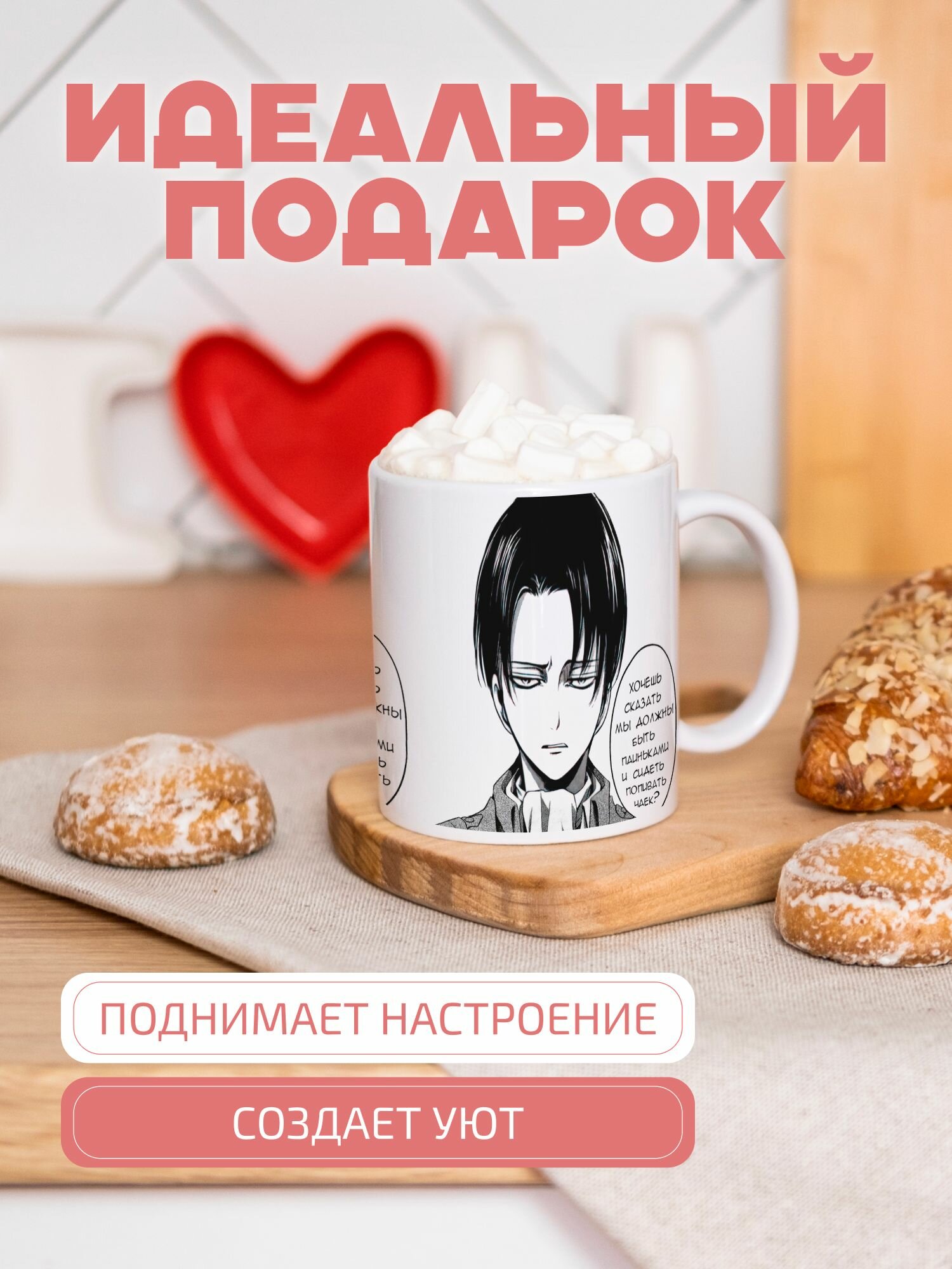 Кружка с принтом манга Атака Титанов Леви интересное: