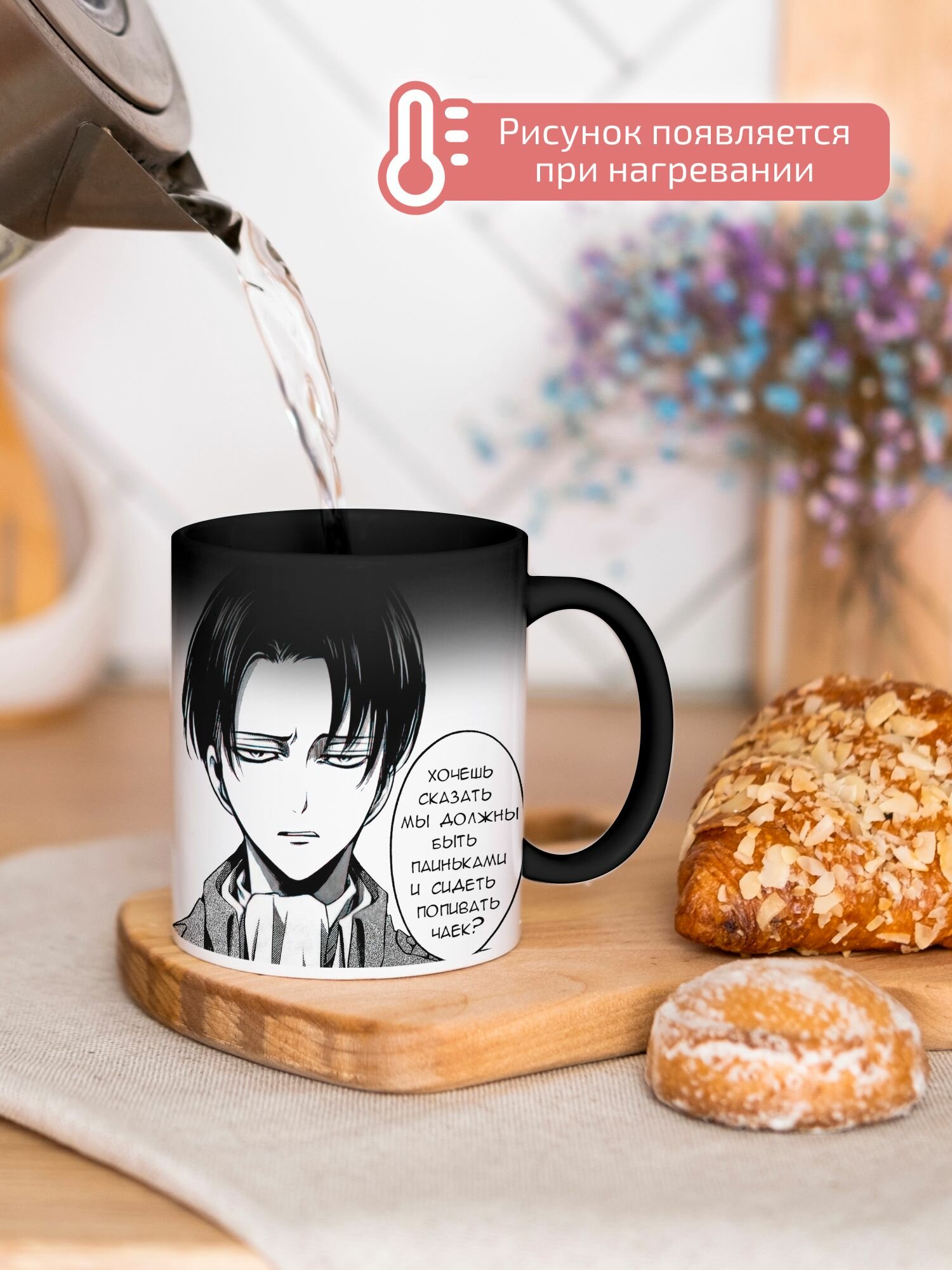 Кружка Хамелеон с принтом манга Атака Титанов Леви интересное: