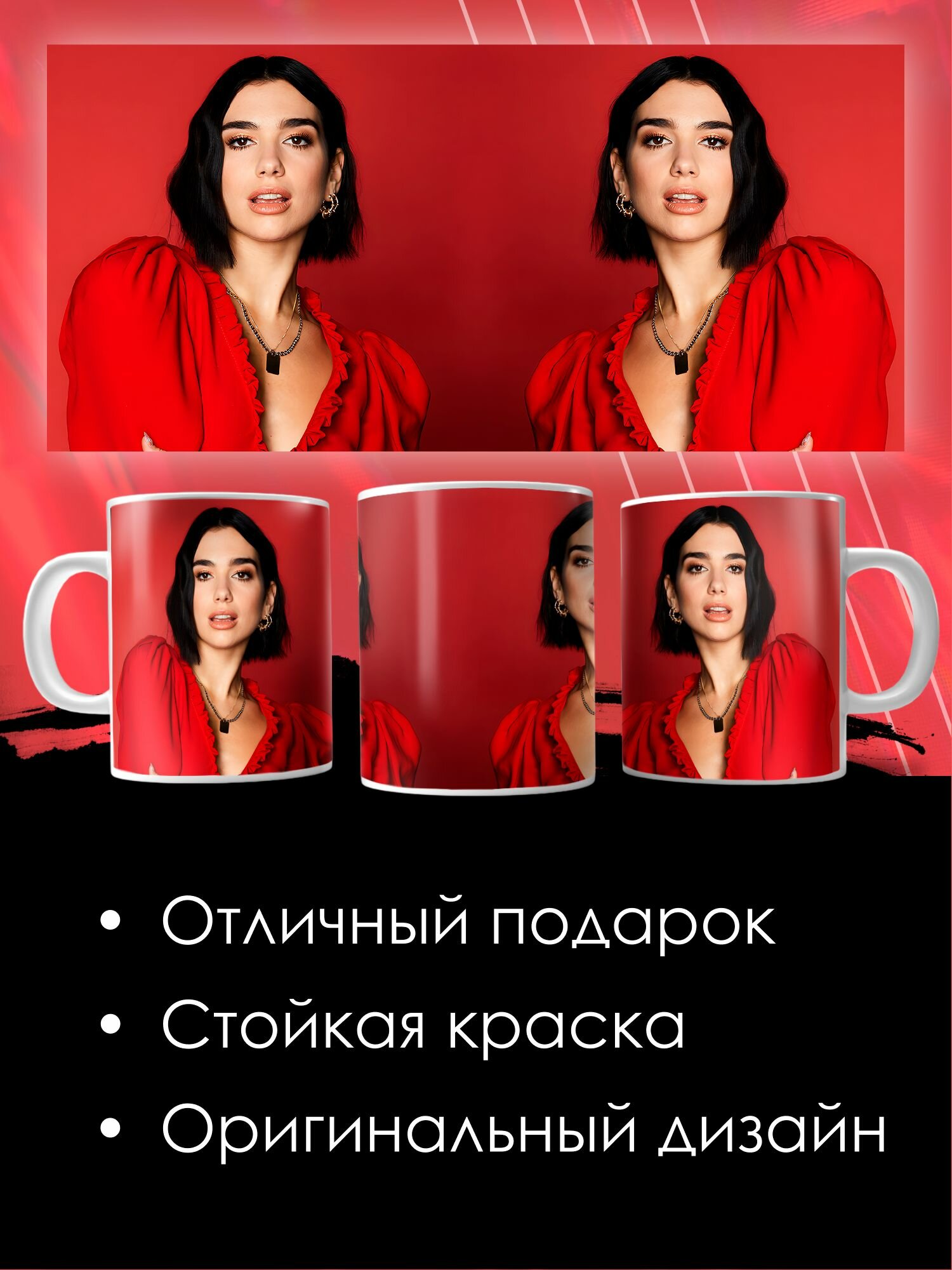 Кружка с принтом Дуа Липа интересное:
