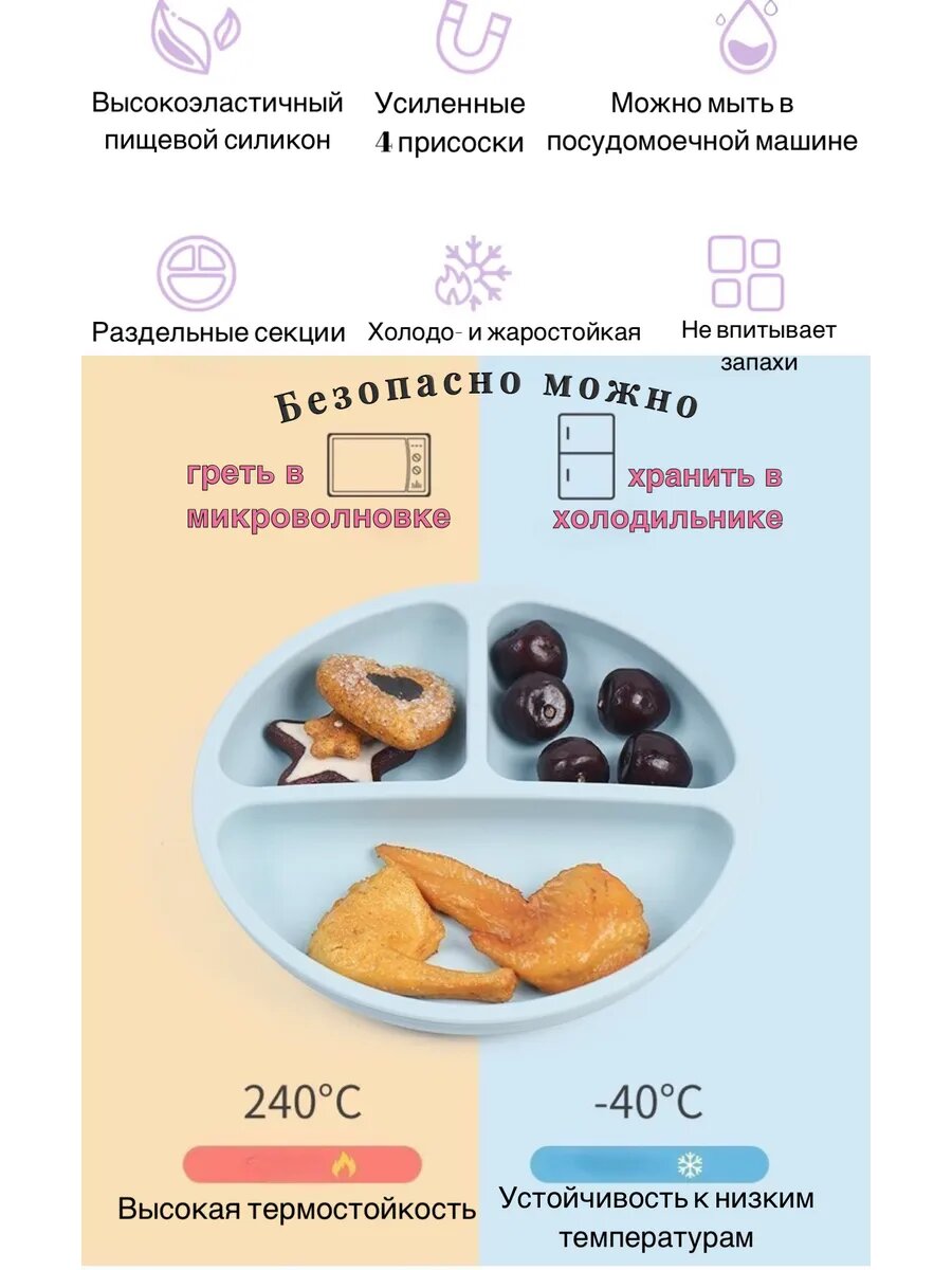 Тарелка силиконовая секционная на присосках; детская посуда, первый прикорм интересное:
