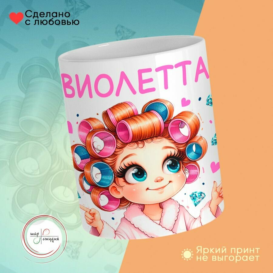Кружка, "Виолетточка, мамина красотка, папина принцесса", на 8 марта, день рождения, в подарок для девочки, дочки 330 мл
