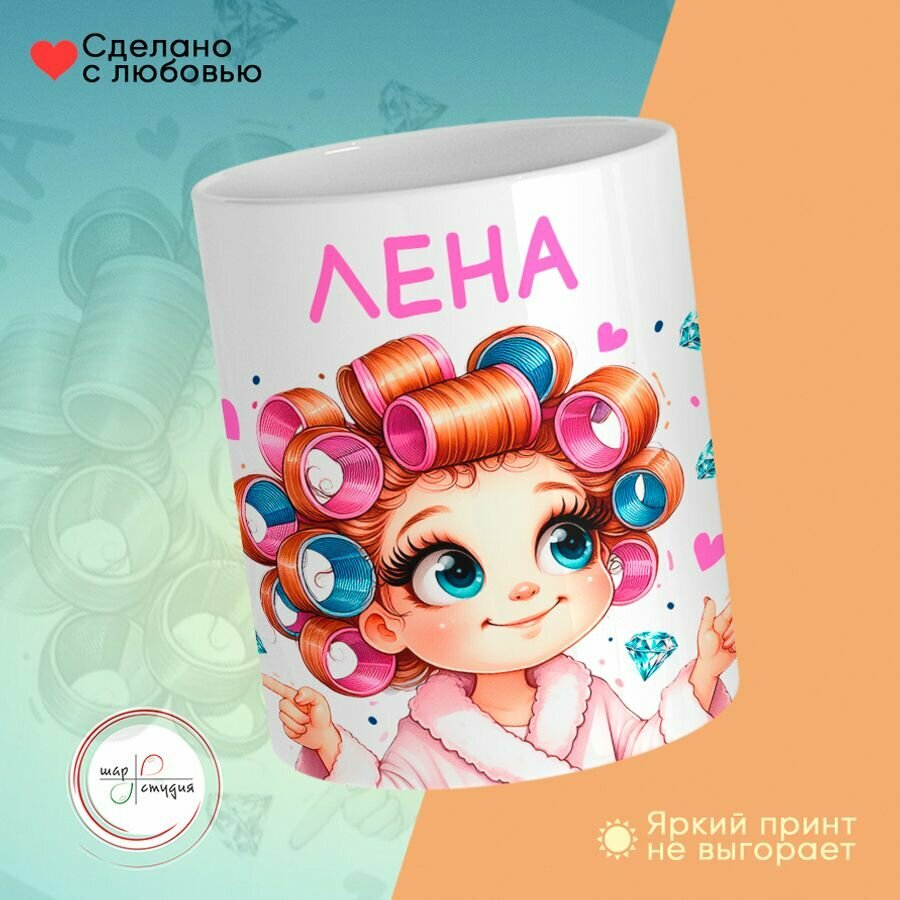 Кружка, "Леночка, мамина красотка, папина принцесса", на 8 марта, день рождения, в подарок для девочки, дочки 330 мл