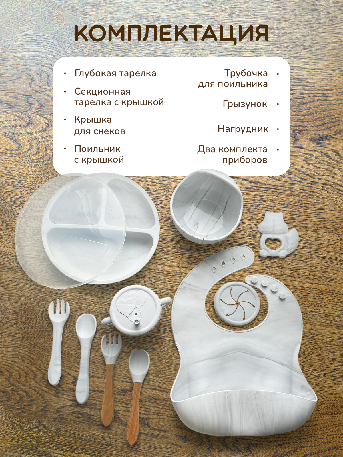 Набор посуды Хевель, для малышей, для первого прикорма, силикон, 12 предметов интересное: