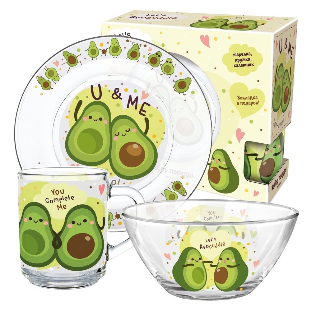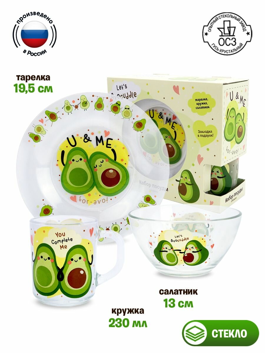 Набор детской посуды ND Play / Авокадо (3 предмета, подарочная упаковка), стекло интересное: