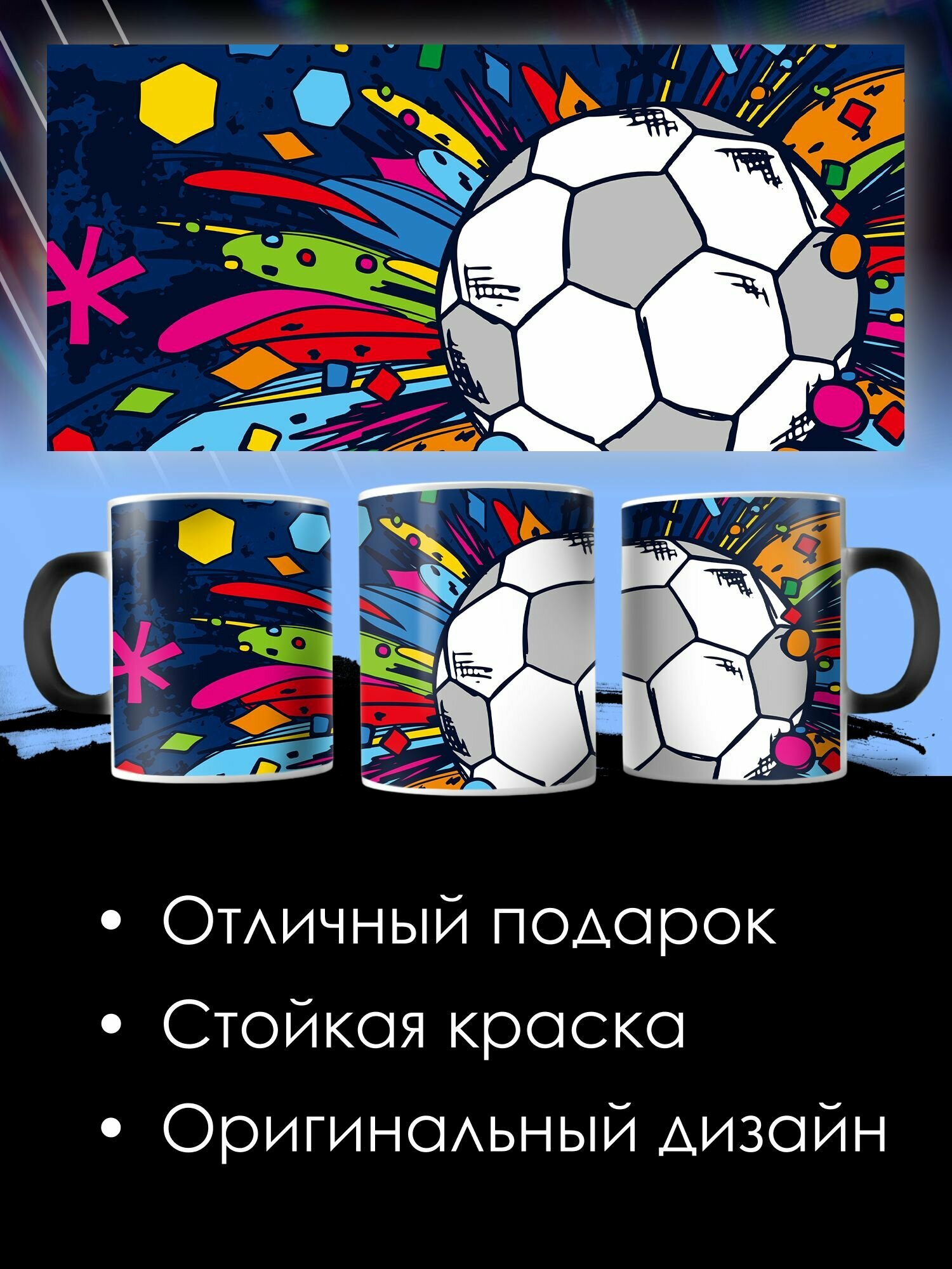 Купить Кружка хамелеон с принтом футбол подарок