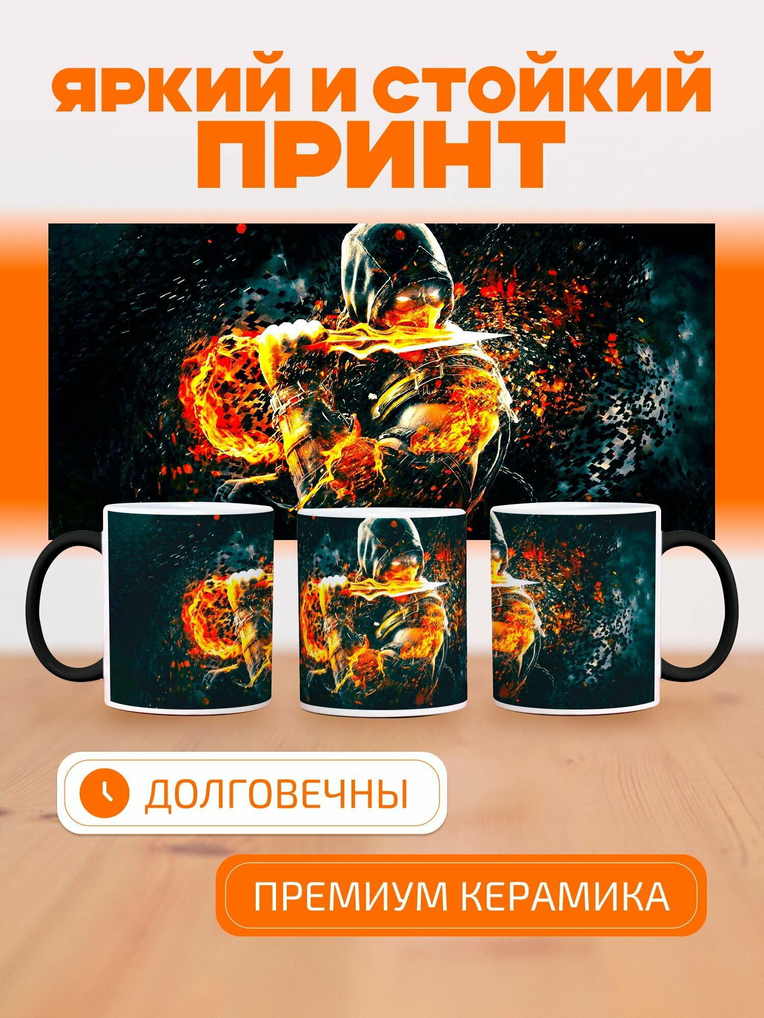 СохранитьКружка Хамелеон с принтом Скорпион Мортал Комбат интересное: